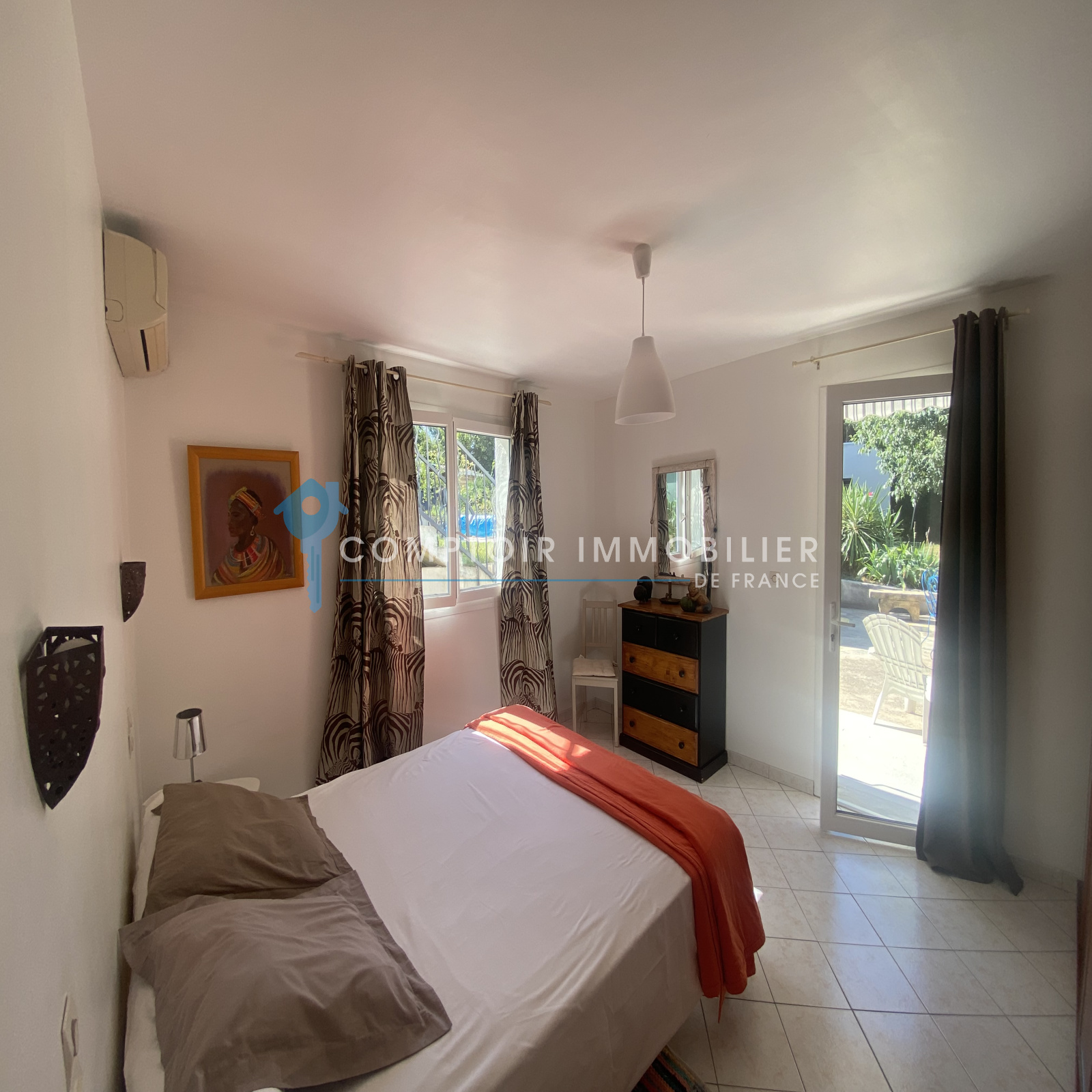 terrasse et la piscine, d'une cuisine séparée équipée et d'un coin nuit avec deux belles chambres, une salle d'eau double vasque, une