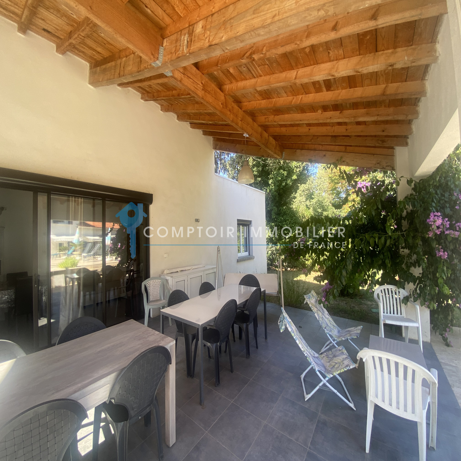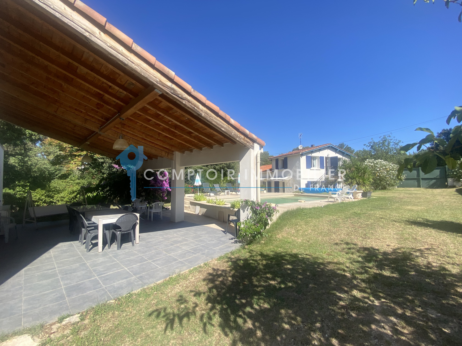 La propriété bénéficie d'une piscine au sel avec une terrasse ombragée afin de profiter au mieux de la piscine et des belles soirées d'été. Vous y trouverez une cuisine d'été, et de pièces annexe.