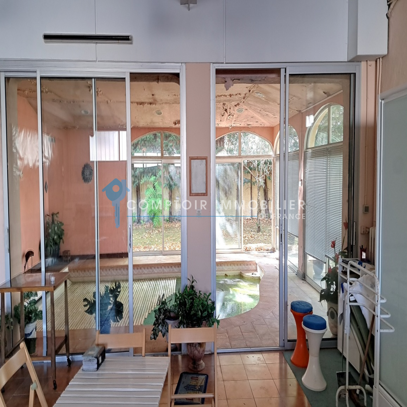 Toujours au rez-de-chaussée, à coté du garage, une pièce de 86m2 pouvant être transformée en appartement et qui est actuellement utilisée comme espace détente avec un coin cuisine pour les soirées entre amis. Dans la continuité de cette pièce, une véranda de 40m2 avec sa piscine intérieure. Cette maison offre de nombreuses possibilités d'aménagement donc je vous invite à me contacter afin de venir la découvrir.