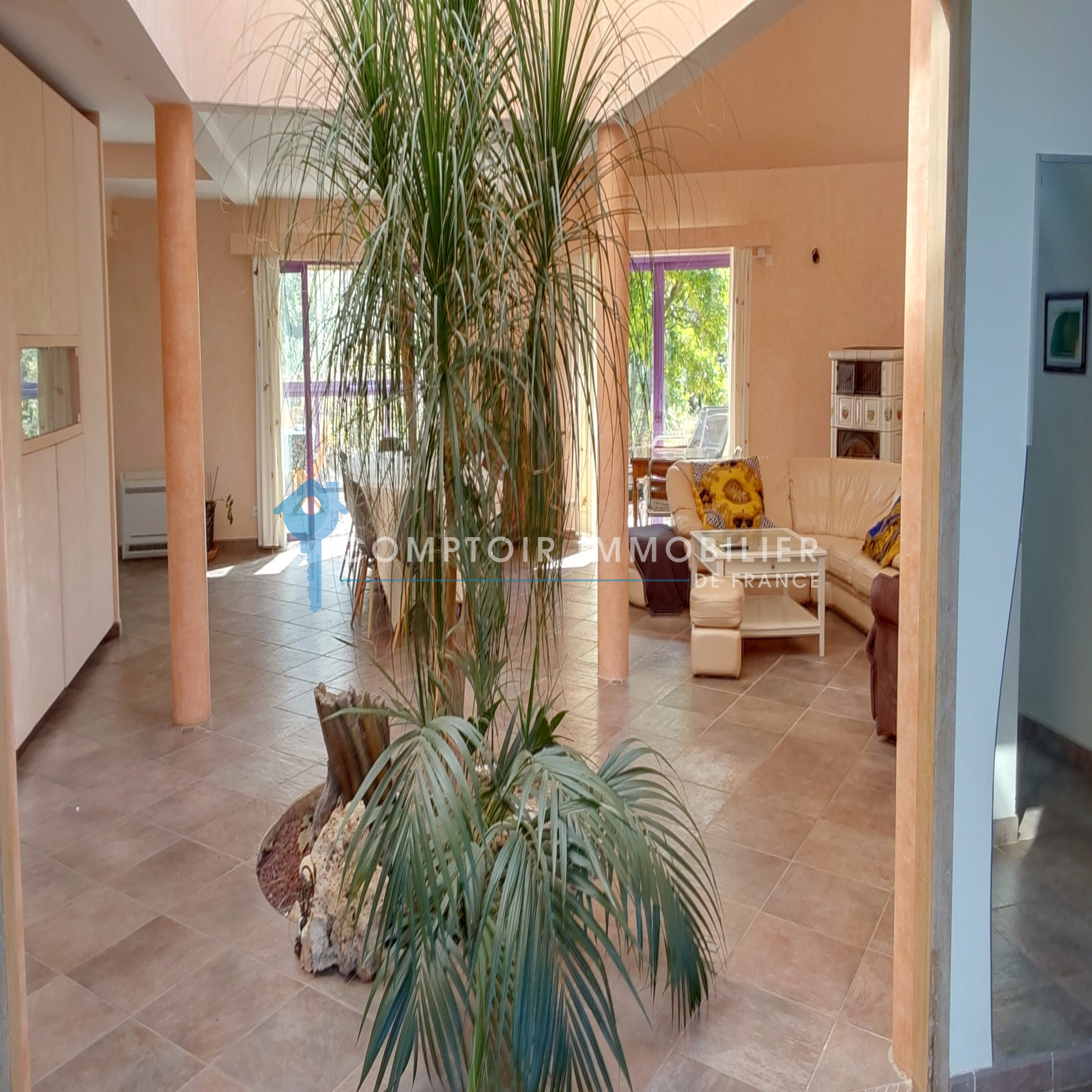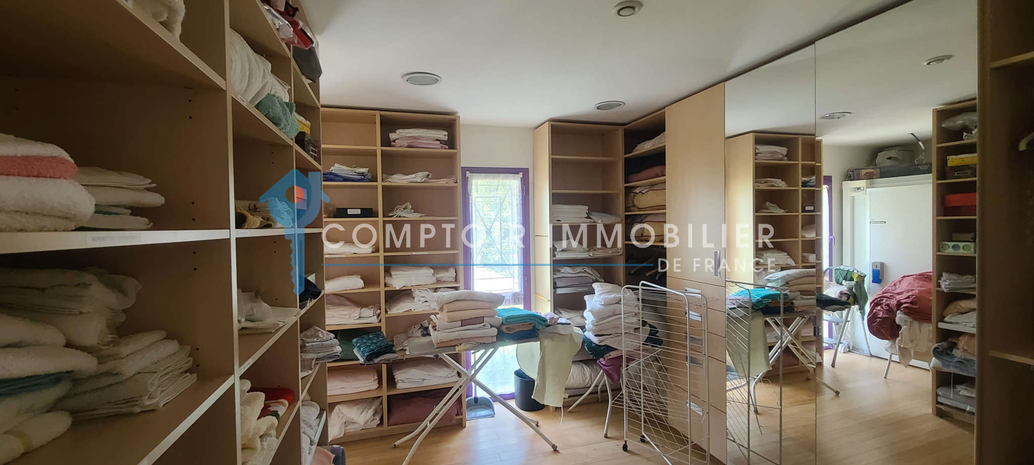 Développant 300 m² habitables, la villa à l'architecture unique vous accueille avec un jardin intérieur lumineux, se prolongeant par un spacieux séjour de 75 m2 qui ouvre au Sud sur la véranda et la terrasse. Des portes à galandage permettent d'ouvrir le bureau-bibliothèque sur le salon. De nombreux placards discrets sont intégrés. De même, une immense cuisine s'ouvre à volonté sur la salle à manger, et communique avec la véranda. Une chambre de 30 m² avec salle d'eau complète le rez-de-chaussée, ainsi qu'une buanderie de 20 m².