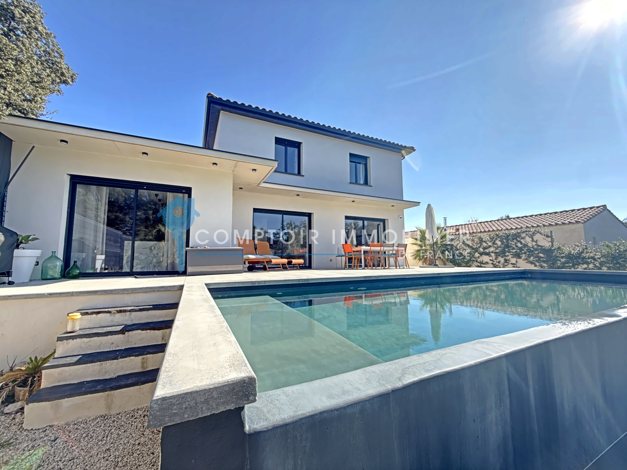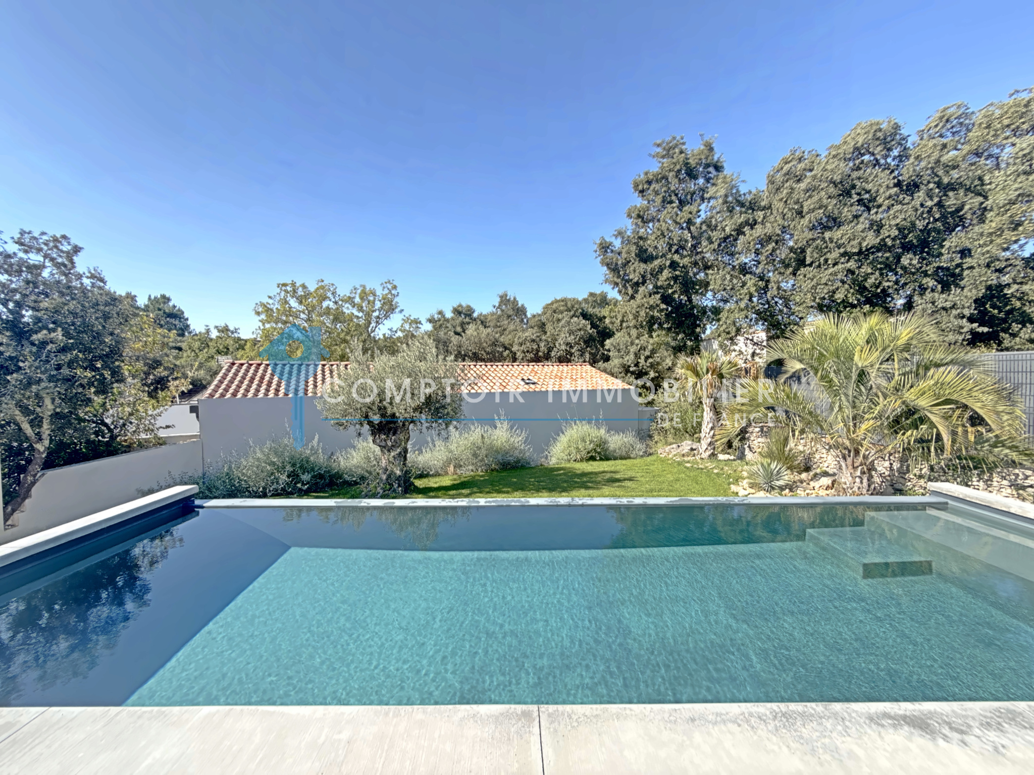 Située aux portes de Nimes , sur la commune de Parignargues en bordure de garrigue , laissez moi vous présenter cette magnifique villa de prestige d'environ 183 m2 dans un cadre paisible .