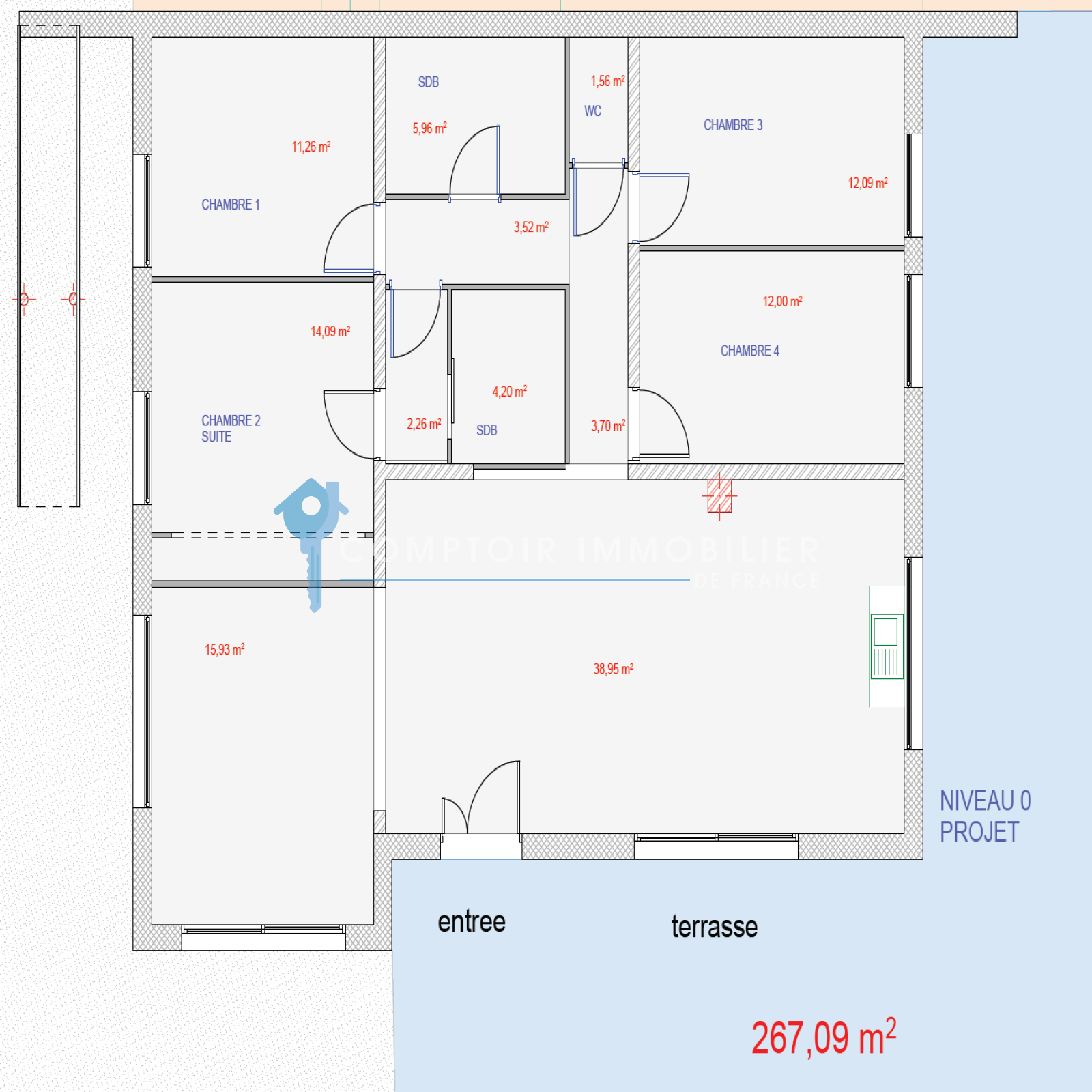 4 Chambres (3 chambres + suite parentale) salle de douche et WC indépendants