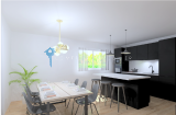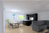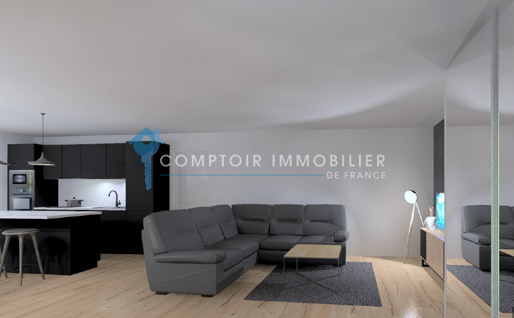 T3 d'environ 57m2 en rez-de-chaussée ; une grande pièce de vie avec salon/ séjour et cuisine ouverte de 26m².