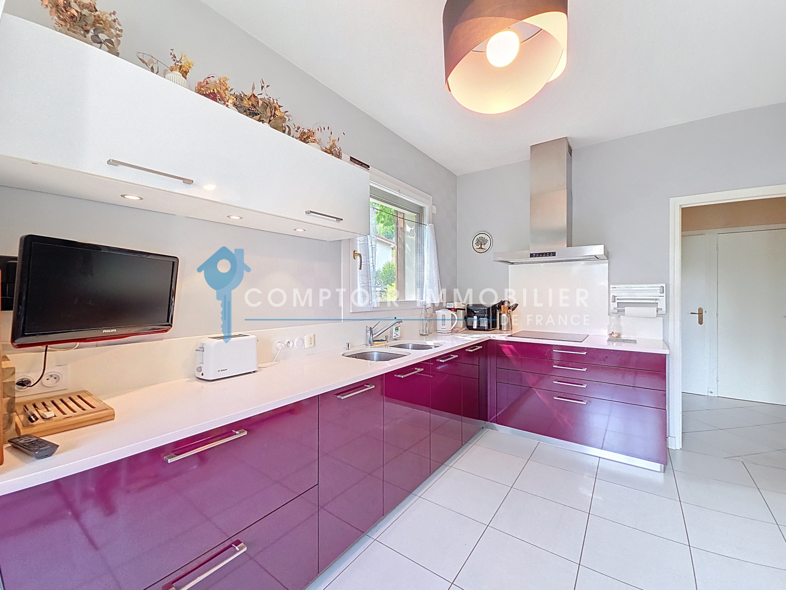 Elle se compose au RDC, d'une entrée de 6m² avec placard intégré, d'un séjour / salle à manger de 32m² donnant sur la terrasse, d'une cuisine Schmidt équipée et séparée de 12m² (pouvant être ouverte sur le séjour).
