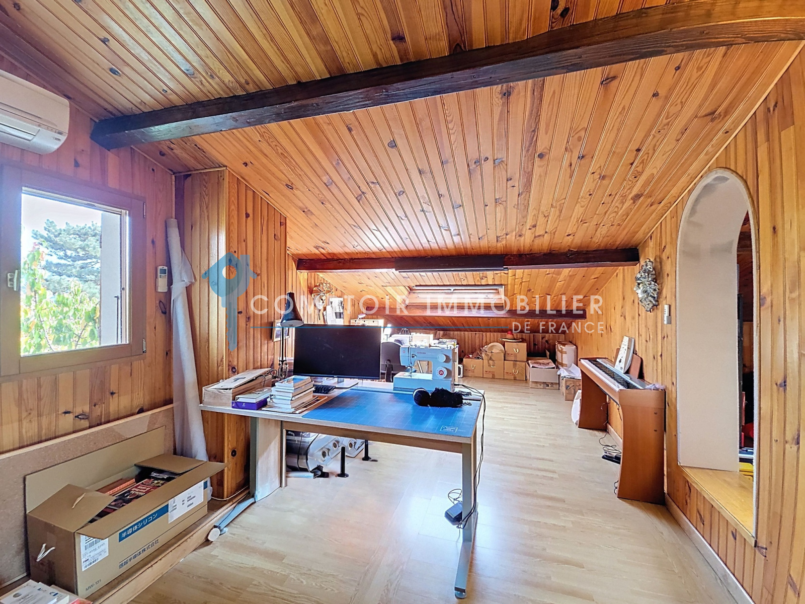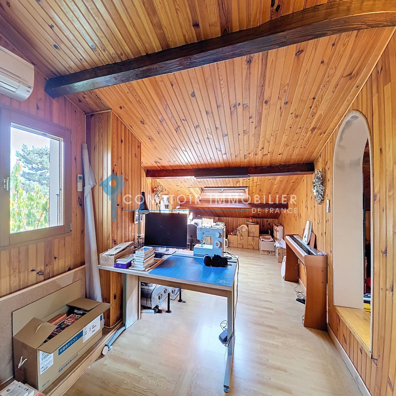 En montant 4 marches supplémentaires vous accéderez sous les combles à la 4ème chambre de 21m² au sol et 10m² carrez ainsi qu'à un bureau ou atelier de même superficie en enfilade de la chambre.