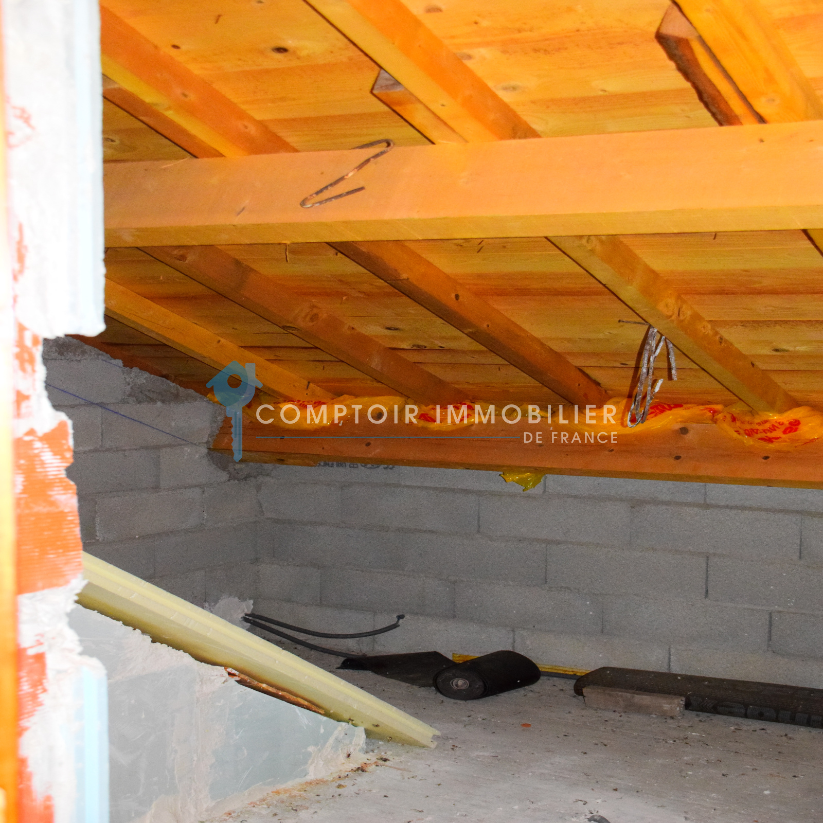 A l’étage, la charpente et la toiture sont neuves ; Et, il vous reste à aménager 3 belles pièces pour une surface de 80 m² également.