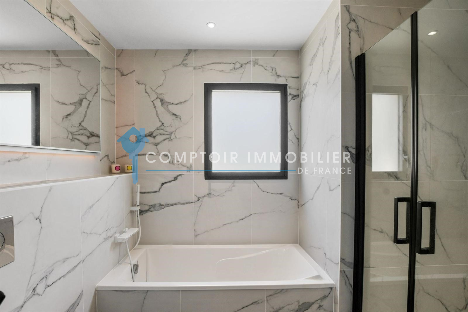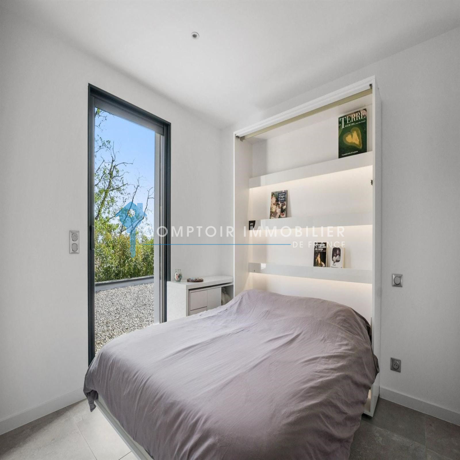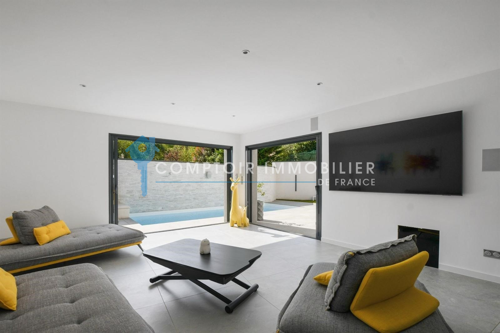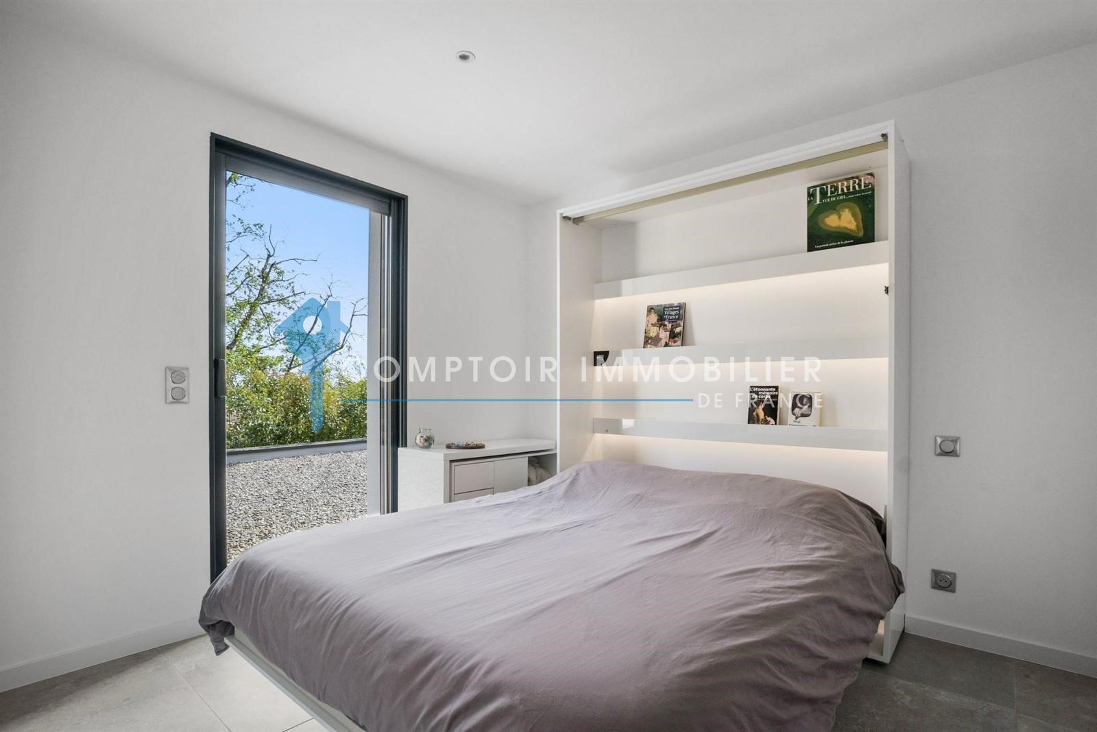 En fond d’impasse, sur un coteau boisé villa contemporaine T4/T5 de 2021 aux prestations premium, avec piscine, jardin intime, garage et stationnements.