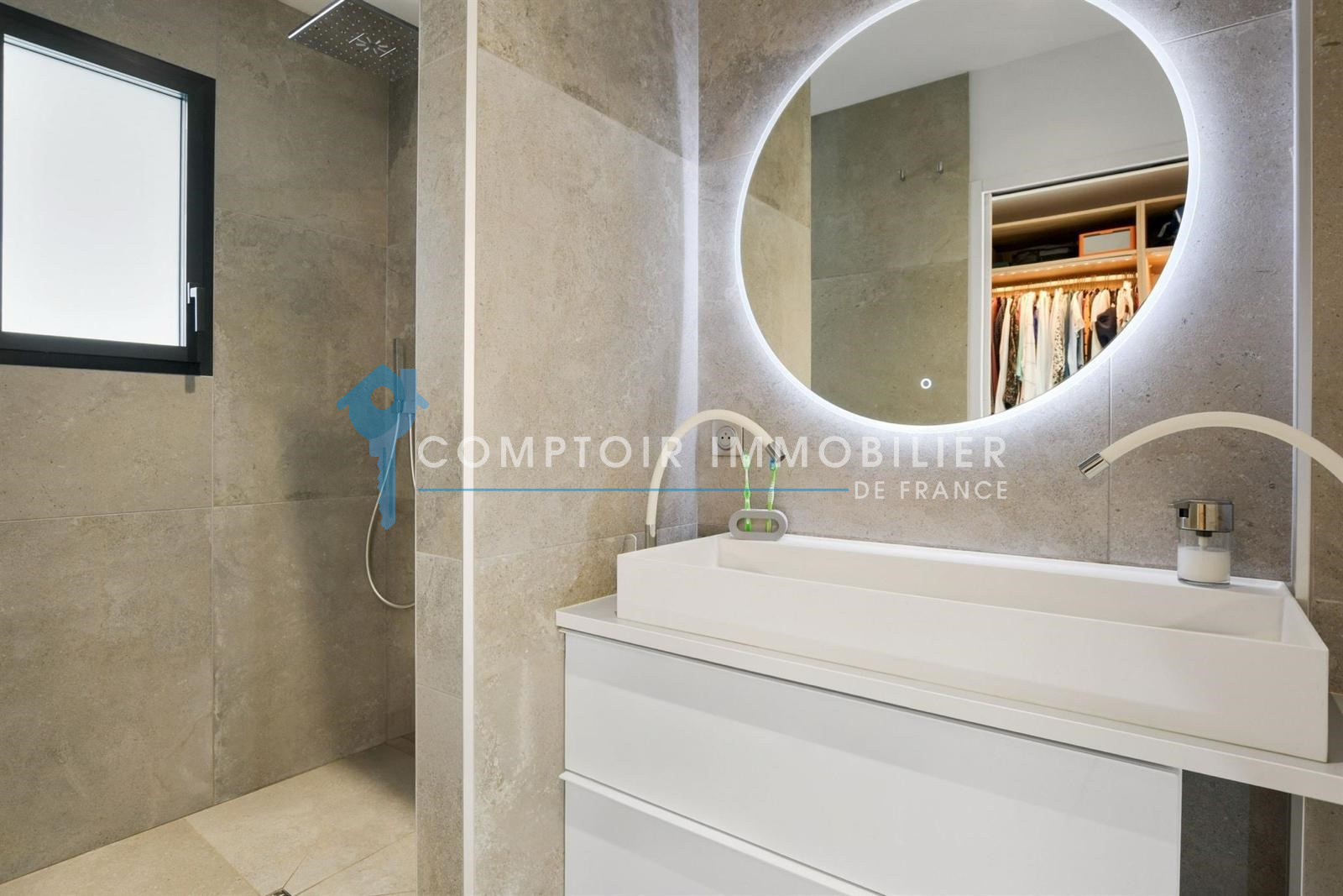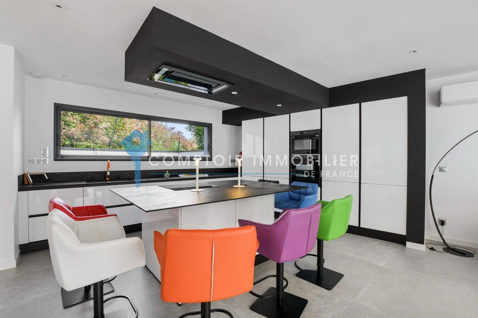 Prestations haut de gamme : domotique omniprésente, chauffage au sol, climatisation réversible, système son intégré, portail et porte de garage motorisé, alarme et vidéosurveillance, matériaux de qualité et finitions soignées.