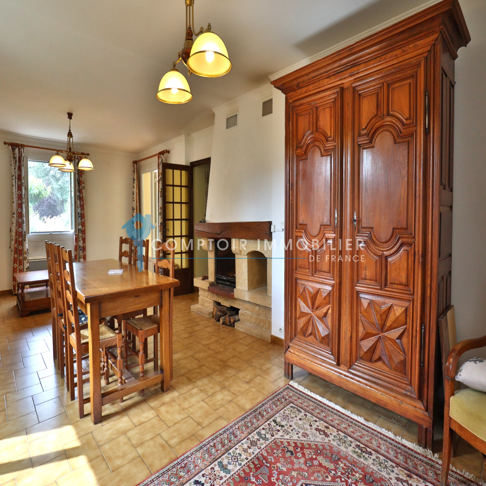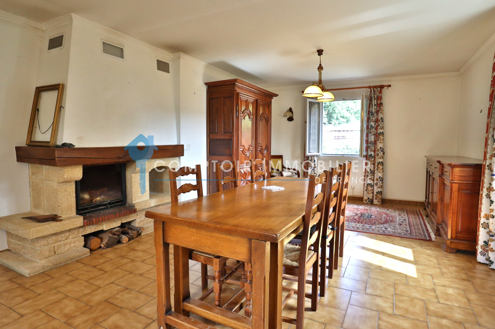 Les prestations: portail automatique, jardin clos, tout à l'égout, chauffage électrique, huisseries en pvc double vitrage, cheminée avec insert dans le salon.