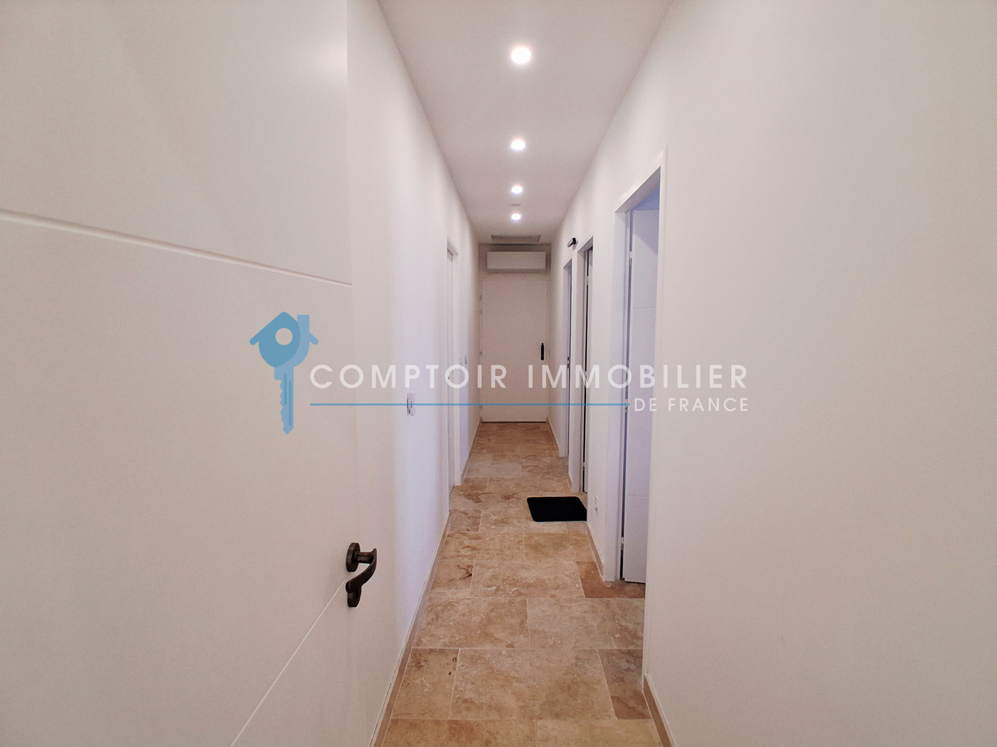 Climatisation réversible dans toutes les pièces, tout à l’égout, prestations soignées, sols en travertin y compris sur la terrasse.