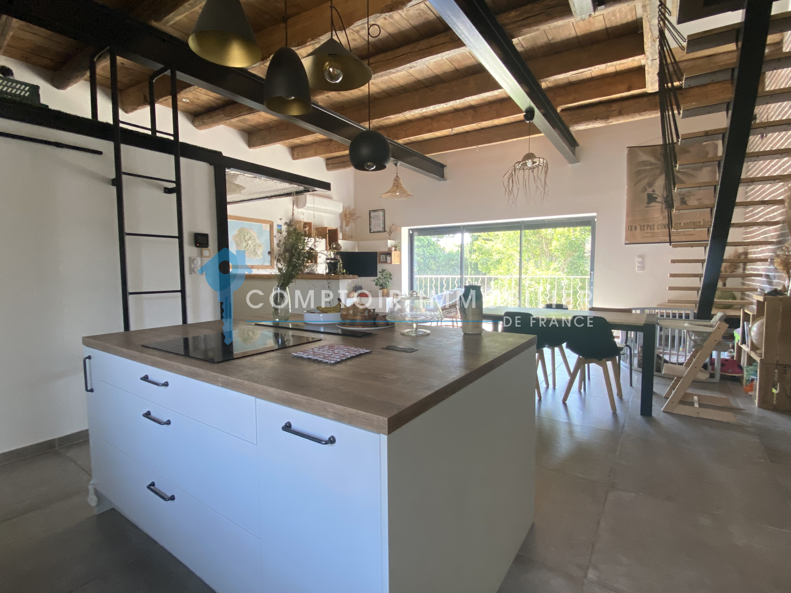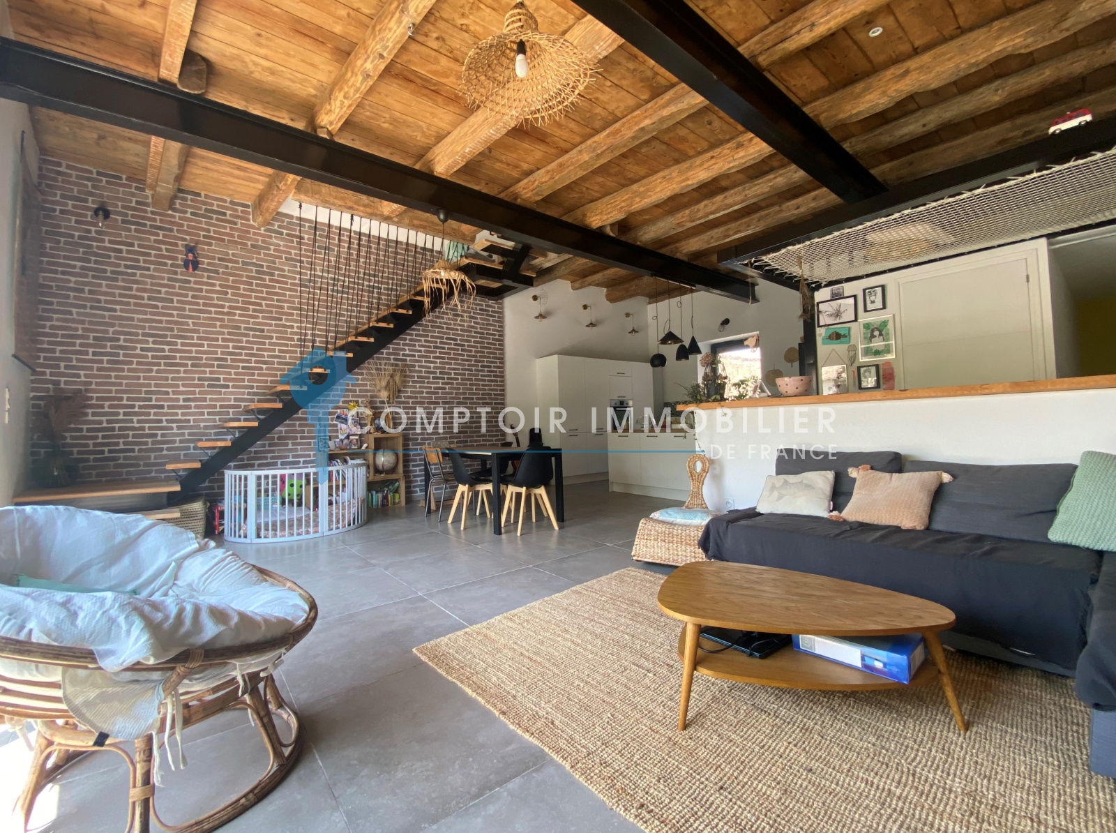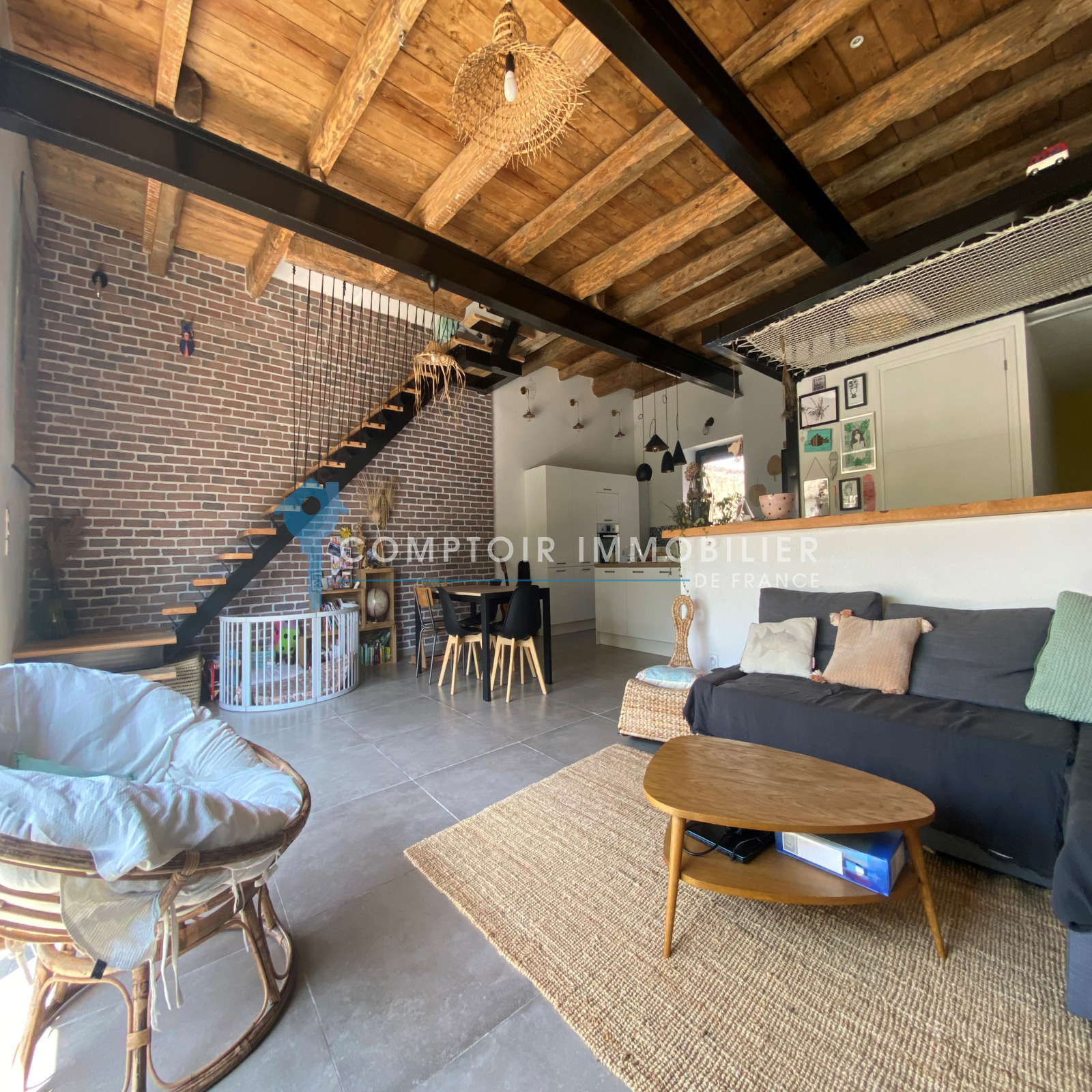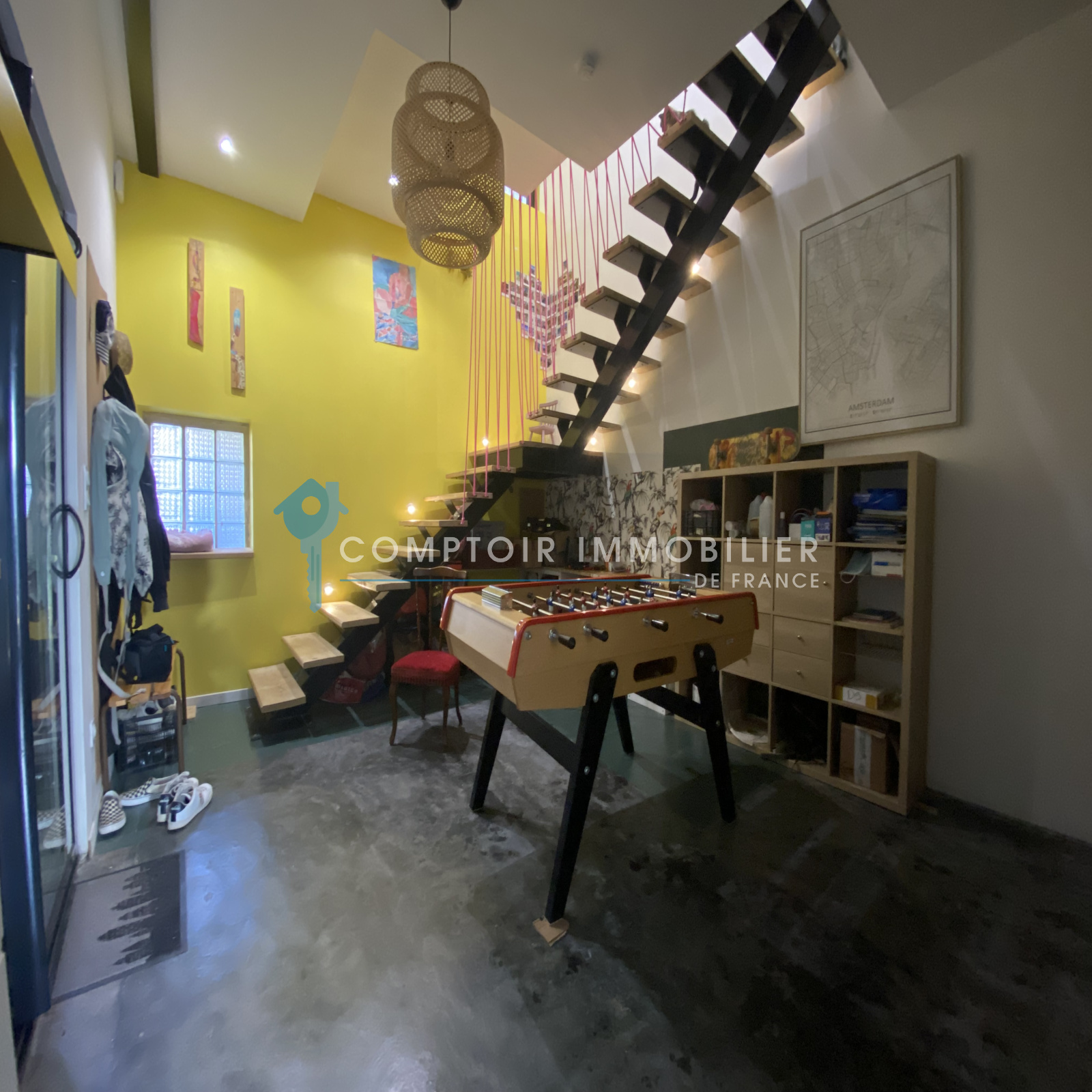 Coup de coeur au premier regard pour ce bien avec ses très belles hauteurs sous plafond, ses planchers bois magnifiques, ses IPN, ses escaliers suspendus, ses menuiseries de grandes tailles , son carrelage en 80x80cm...