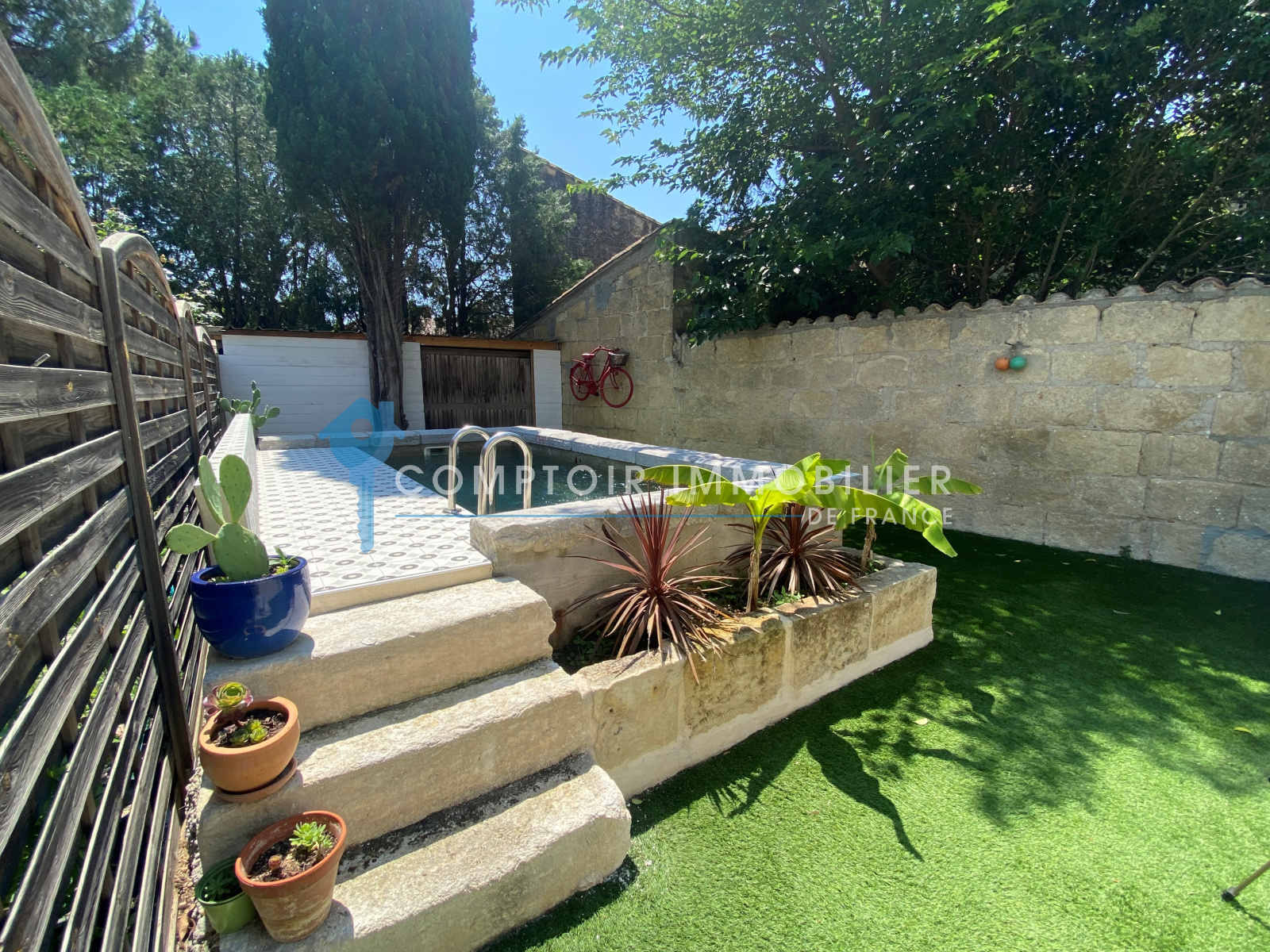 Servol Nicolas votre conseiller en Immobilier sur Meynes et ses environs vous propose cette superbe maison avec jardin et piscine en plein coeur du joli village de Montfrin.