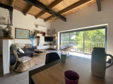 Cette belle et grande maison en pierre atypique, rénovée avec goût dans un style industriel et chic est proche de toutes les commodités,et à la fois discrètement nichée dans un petit chemin.