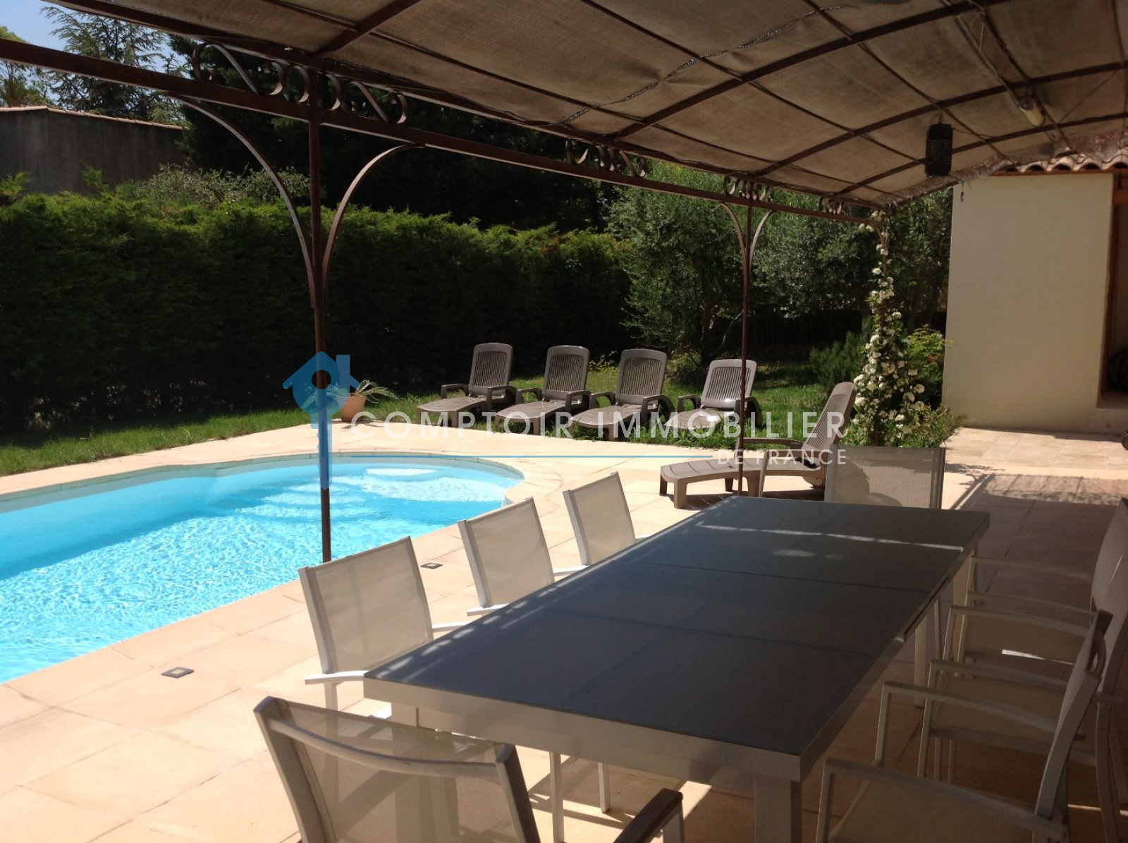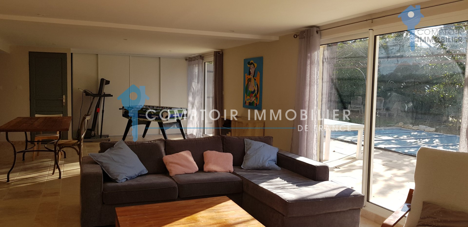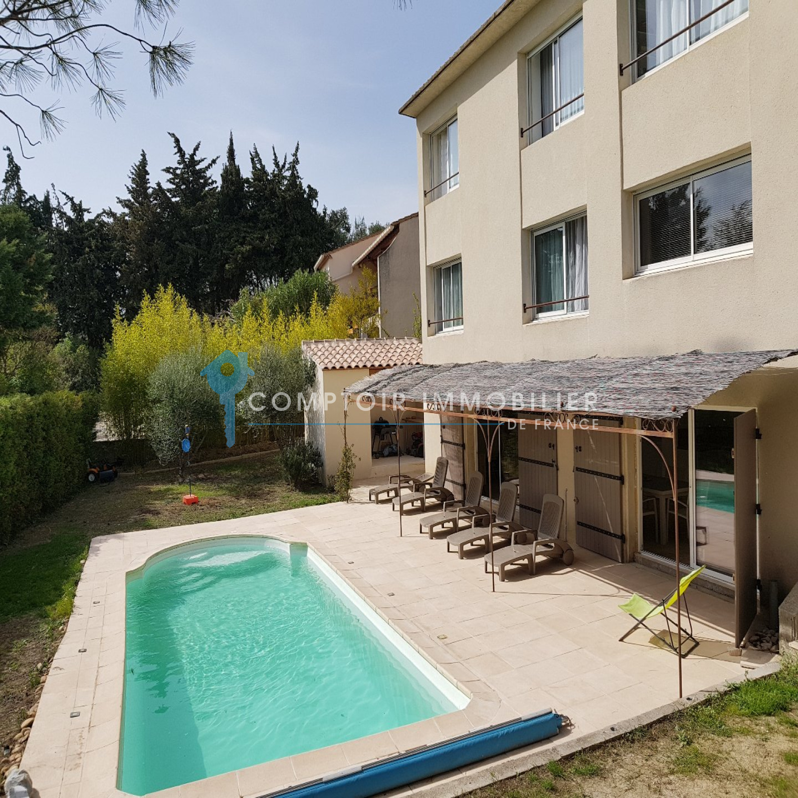 REMOULINS proche - A 10min du péage de Remoulins, dans un village disposant de toutes les infrastructures, je vous invite à découvrir ce petit bijou à l'esprit contemporain, un bien unique situé sur les hauteurs, en zone non inondable. Construction de 2003, cette maison est idéale pour une famille puisqu'elle compte près de 220m² habitables. Elle se compose au rez de chaussée et 1er étage, de 3 chambres dont une suite parentale de 35m² et d'un bureau, d'une deuxième salle de bains en teck et béton ciré avec douche et WC, d'une magnifique pièce à vivre orientée sud-ouest, avec de belles ouvertures qui en font un séjour bordé de lumière et un accès terrasse à l'abri des regards. Très conviviale, la cuisine, neuve, est entièrement équipée. Au rez de jardin, un splendide appartement type 2 d'environ 70m² qui se prêtera parfaitement à une activité de gîte (potentiel location saisonnière), est relié au reste de la maison mais il dispose aussi d'une entrée indépendante. La piscine et son pool house viennent agrémenter ce bien rare aux prestations de qualité. Le terrain de plus de 700m² est clos, l'environnement est des plus calmes. Ne passez pas à côté !! COMPTOIR IMMOBILIER DE FRANCE - Anne JAREMCZUK - 06 87 85 54 32 - Plus d'informations sur www.cif-immo.com (réf. 12806) -- Informations CORONAVIRUS : Nos visites s'effectueront avec la mise en place d'un protocole sanitaire, notamment avec le port d'un masque et dans le respect des gestes barrières, afin d'assurer la protection de tous. -- Honoraires charge vendeur