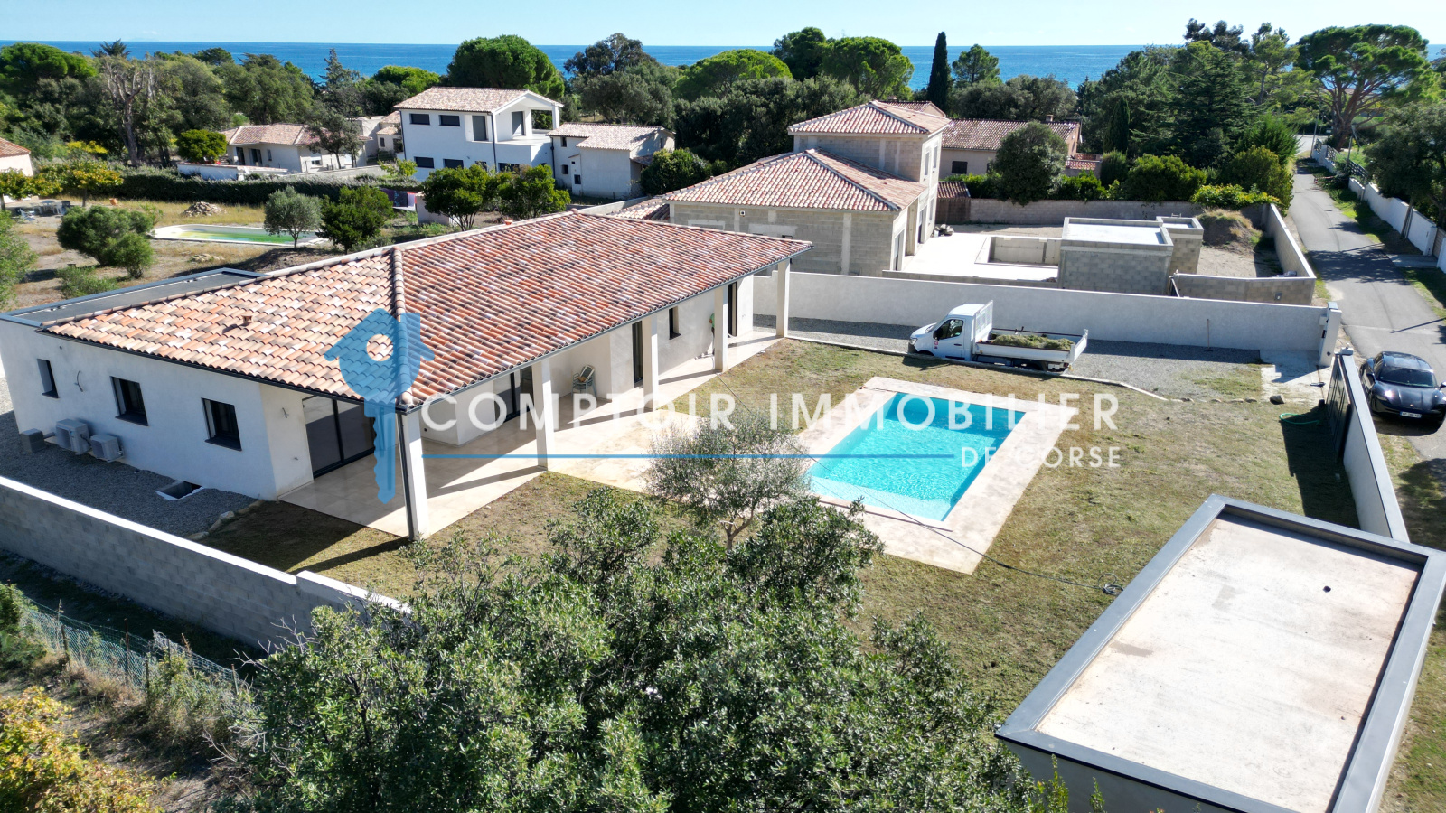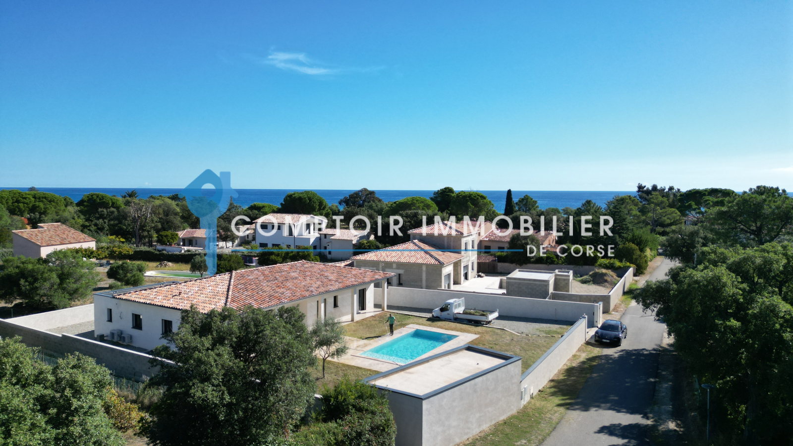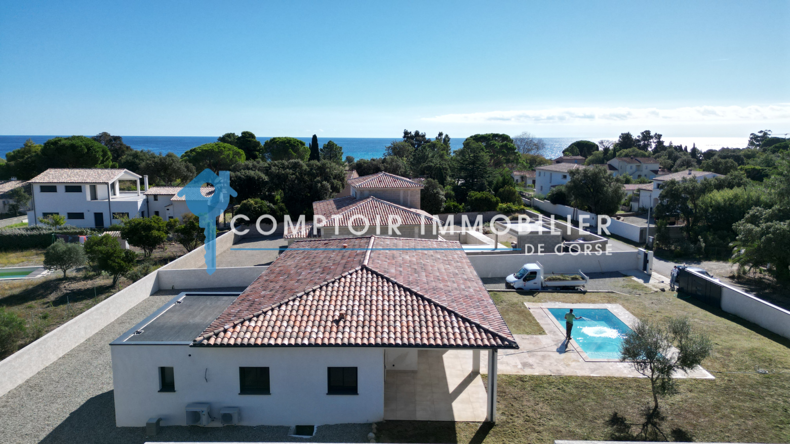 Villa contemporaine édifiée sur une parcelle de 1169 m2 entièrement clôturée. Située sur la commune de Solaro à seulement 5 minutes en voiture de Solenzara et de son port de plaisance...