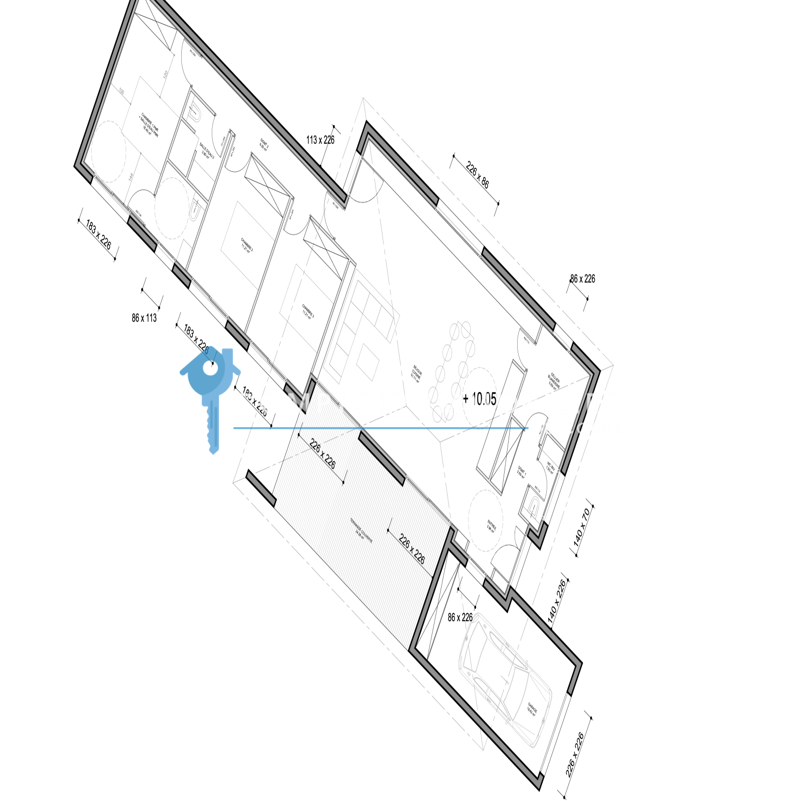 Il s'agit d'une villa T4 avec garage, conçue pour offrir confort et fonctionnalité. Elle se compose d'une spacieuse pièce de vie avec cuisine ouverte, prolongée par un cellier, ainsi qu'un wc indépendant .