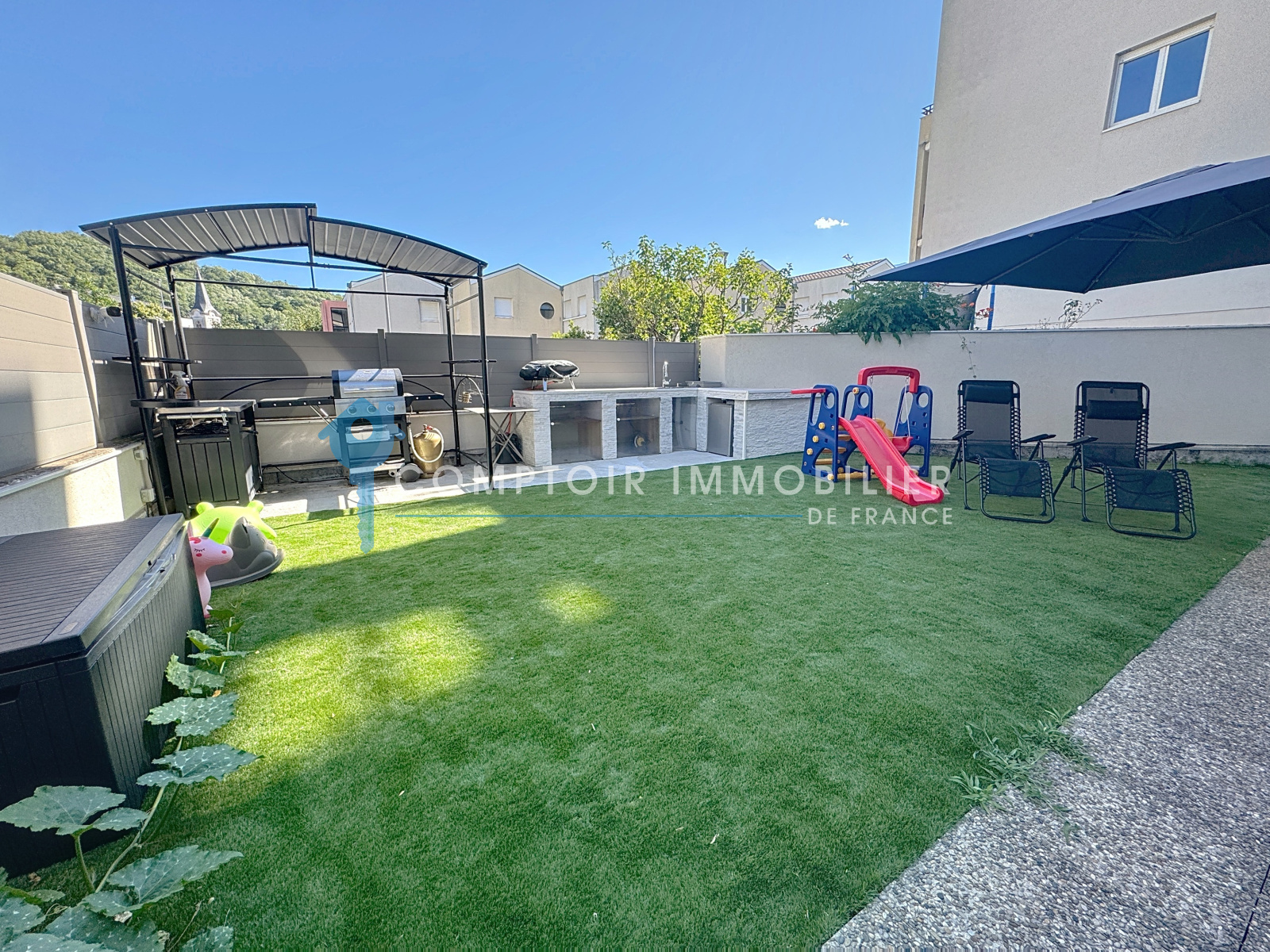 -Un extérieur exceptionnel de 150 m² soigneusement agencée – un cadre idéal pour se relaxer, recevoir ou profiter d’instants en famille.