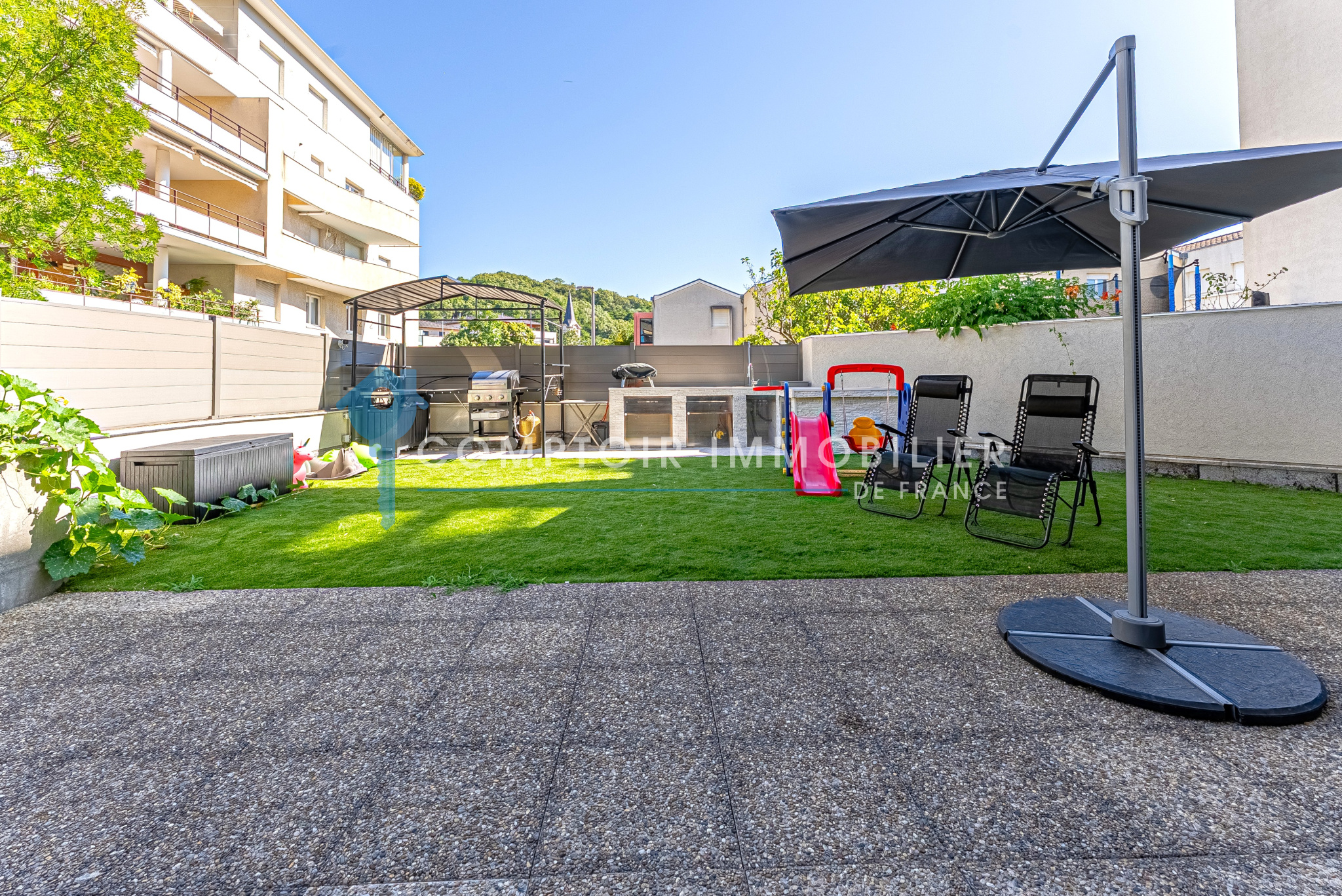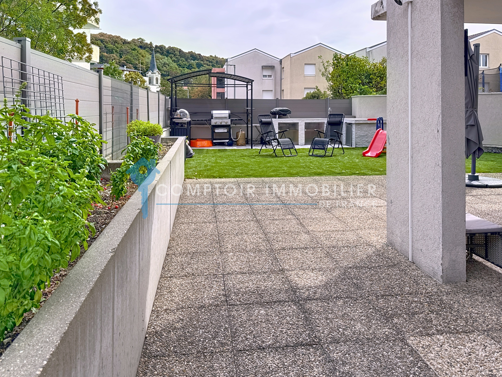 Comptoir Immobilier de France vous invite à découvrir ce bien unique, véritable coup de cœur, offrant le parfait compromis entre Maison et Appartement. Situé dans le quartier très recherché de la Frange Verte à Échirolles, cet appartement T5 de 125 m² offre un cadre de vie moderne, spacieux et lumineux. Ce bien rare se distingue notamment par une terrasse/jardin en attique de 150 m², un espace extérieur d’exception qui vient enrichir votre qualité de vie au quotidien.
