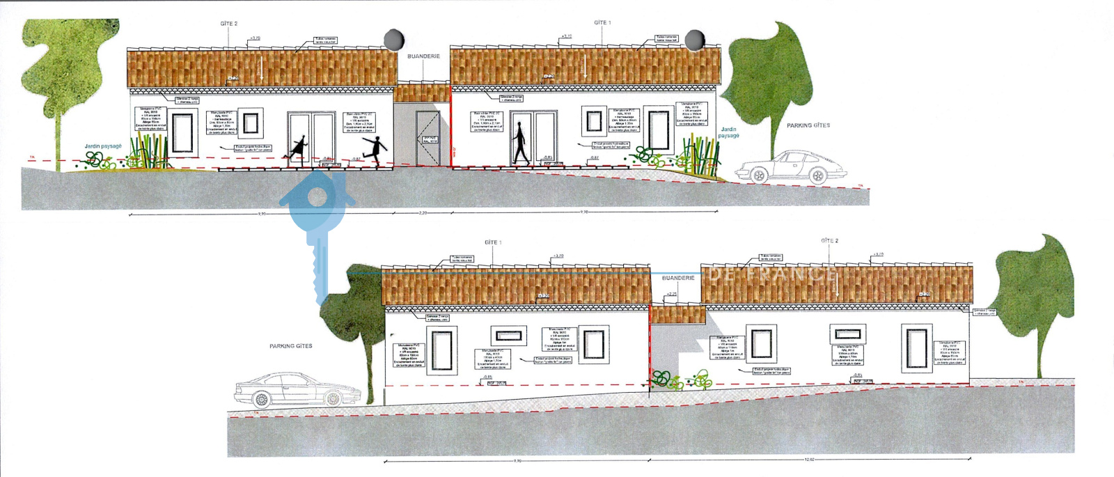 Belle parcelle boisée de 2.600 m² composée de deux maisons accolées de 100 m² et 150 m² sur deux niveaux avec belle terrasse offrant une vue panoramique, un garage indépendant de 60m², et deux autres habitations de 60 m² chacune à vocation de location saisonnière.