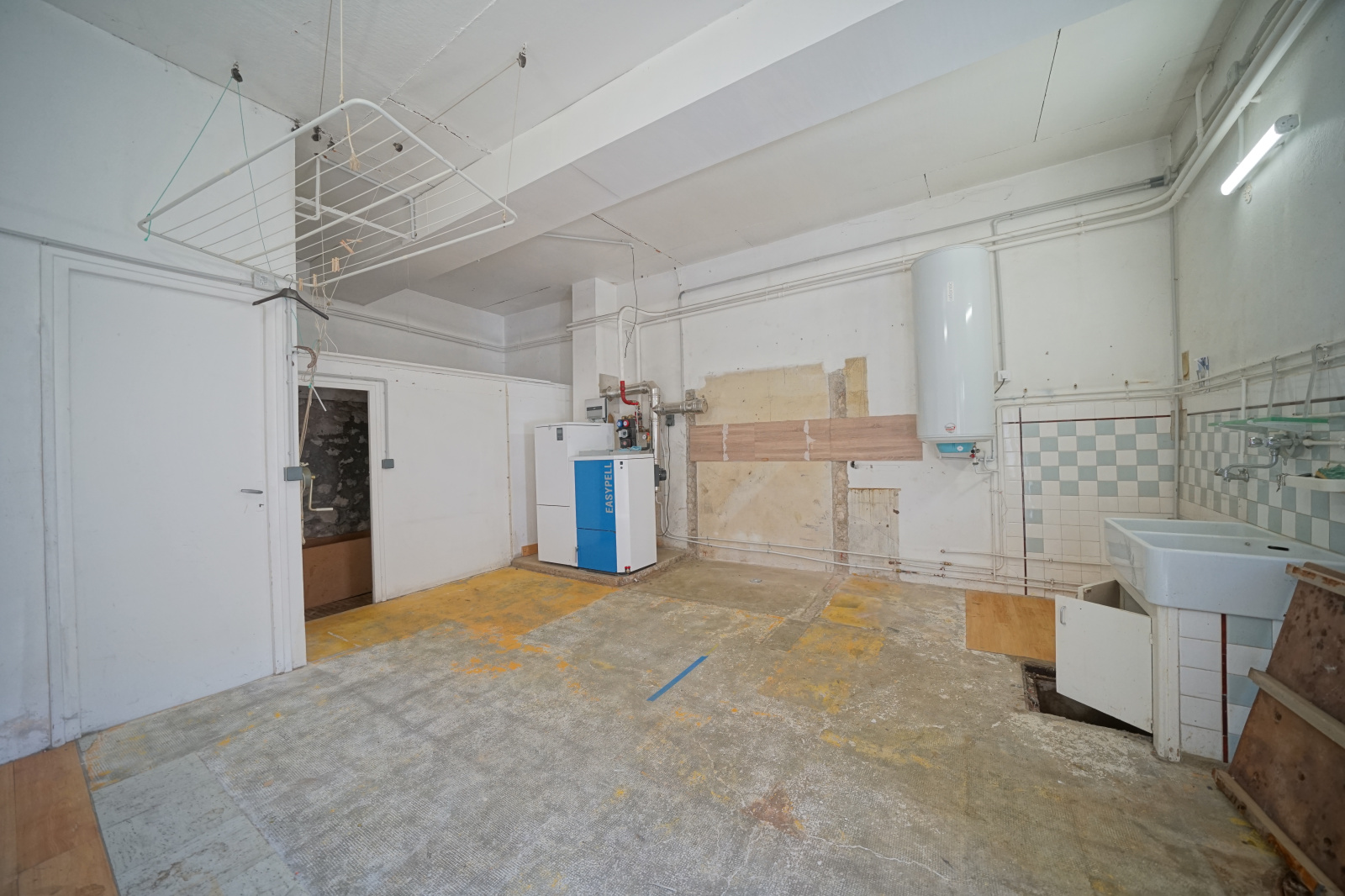 Ce bien est composé au rez-de-chaussée, d'une entrée avec placards de 8 m², une grande buanderie/chaufferie de 21,8 m², une cave de 4.7 m² et une réserve de 4.2 m²