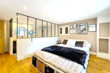 A l'étage supérieur, vous découvrirez une cuisine ouverte, un espace séjour et salon agrémenté d'un poêle à bois, deux chambres, une salle d'eau ainsi qu'un magnifique dressing.