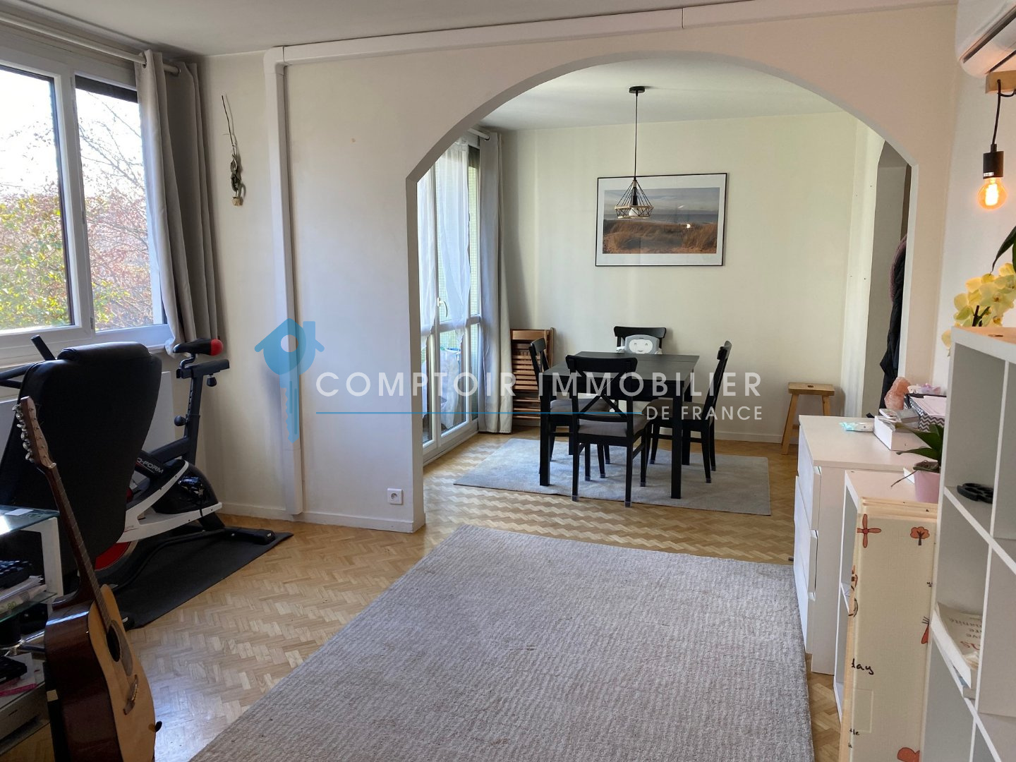 Comptoir Immobilier de France Grenoble - Grésivaudan Suite Mutation Professionelle - Meylan - Proche de toutes commodités - Appartement T5 de 94m2 Carrez dans un parc arboré à 2min de tous les commerces. Deuxième étage sans ascenseur d'une résidence des années 70 en très bon état. Appartement spacieux et en très bon état avec de nombreux rangements. Double vitrage et volets éléctriques dans tout l'appartement. Climatisation réversible dans le coin jour et dans le couloir d'accès aux chambres, installée en 2021. Salle à manger/Salon/Séjour, 3 chambres (dont 2 avec placards intégrés), dressing séparé. Une buanderie, un wc, et une salle de bains avec baignoire (seule pièce à remettre potentiellement au goût du jour). Grande cuisine équipée séparée (pas de possibilité d'ouvrir sur le séjour) Possibilité de re-créer une 4ème chambre Charges de copropriété 112€/mois (devrait réduire avec le départ du gardien de l'immeuble) Frais EDF/Gaz environ 120€/mois Taxe Foncière : 1250€/an Chauffage au gaz de ville par chaudière individuelle. Aucun frais et travaux à prévoir à ce jour. Une grande cave de 7m2 vient complété ce bien. Pas de garage mais grand parking collectif. Prix 282 000€ Bien soumis au statut juridique de la Copropriété. Nb de lots : 56. Charges annuelles de copropriété (Montant moyen annuel quote-part du budget prévisionnel vendeur) : 1 350 €. Honoraires charge vendeur CIF GRESIVAUDAN - Pascal AMALRIC - 06 26 56 64 16 - Plus d'informations sur cif-immo.com (réf. 14173) -- Informations CORONAVIRUS : Nos visites s'effectueront avec la mise en place d'un protocole sanitaire, notamment avec le port d'un masque et dans le respect des gestes barrières, afin d'assurer la protection de tous. -- CIF GRENOBLE GRESIVAUDAN - Lucie RIONDEL - 06 08 68 19 99 - EI Agent commercial RSAC N° 889 131 611 - Ville du greffe : GRENOBLE - Plus d'informations sur cif-grenoble-gresivaudan.com (réf. 14173)