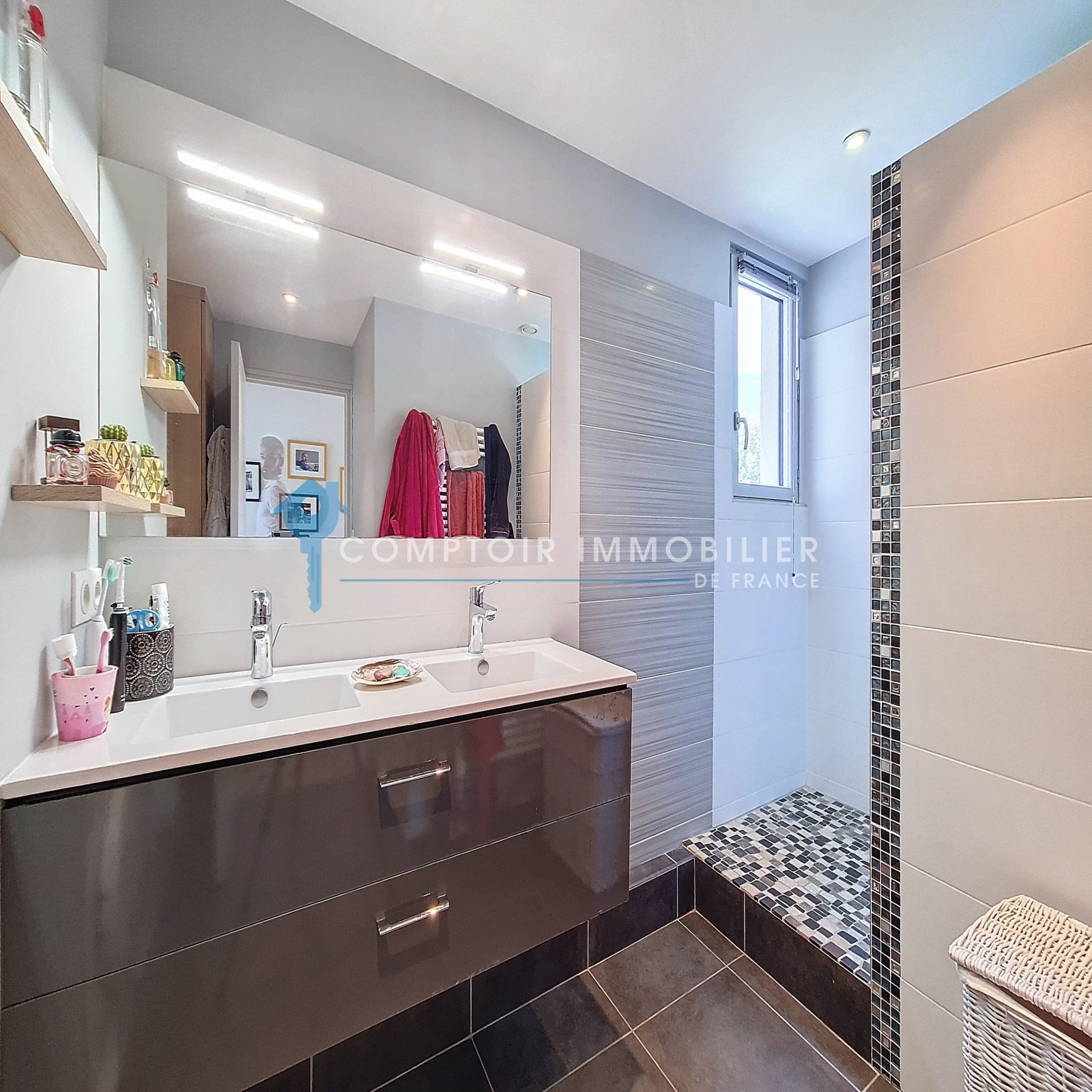 Il se compose d'une cuisine équipée semi-ouverte sur un beau séjour totalisant environ 45m², d'une entrée avec placard, de trois chambres allant de 12 à 14m², d'une salle d'eau avec douche à l'italienne, double vasque ainsi qu'un coin buanderie d'un wc séparé et de nombreux rangements.
