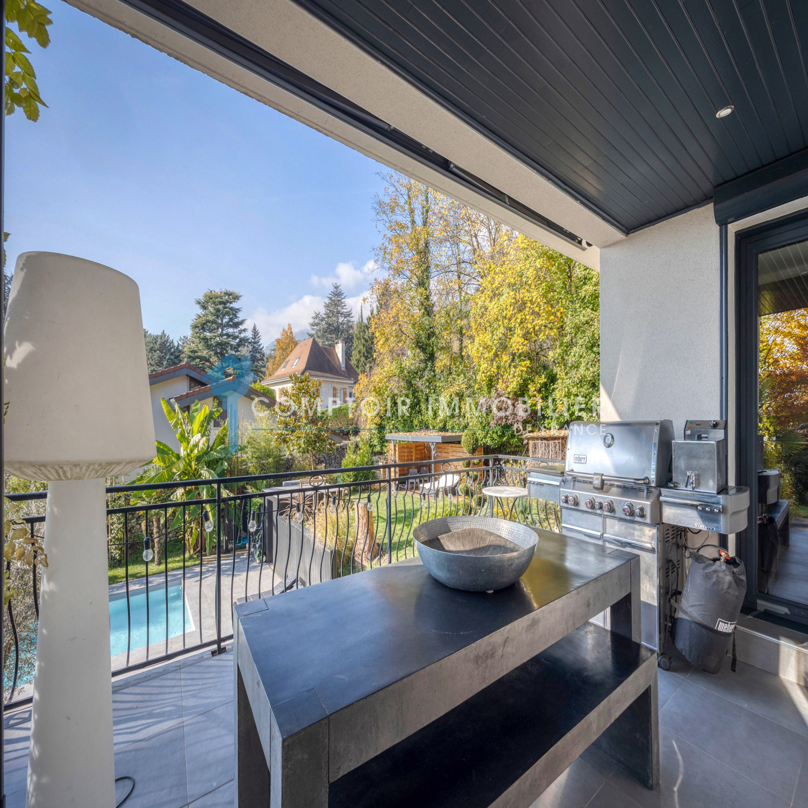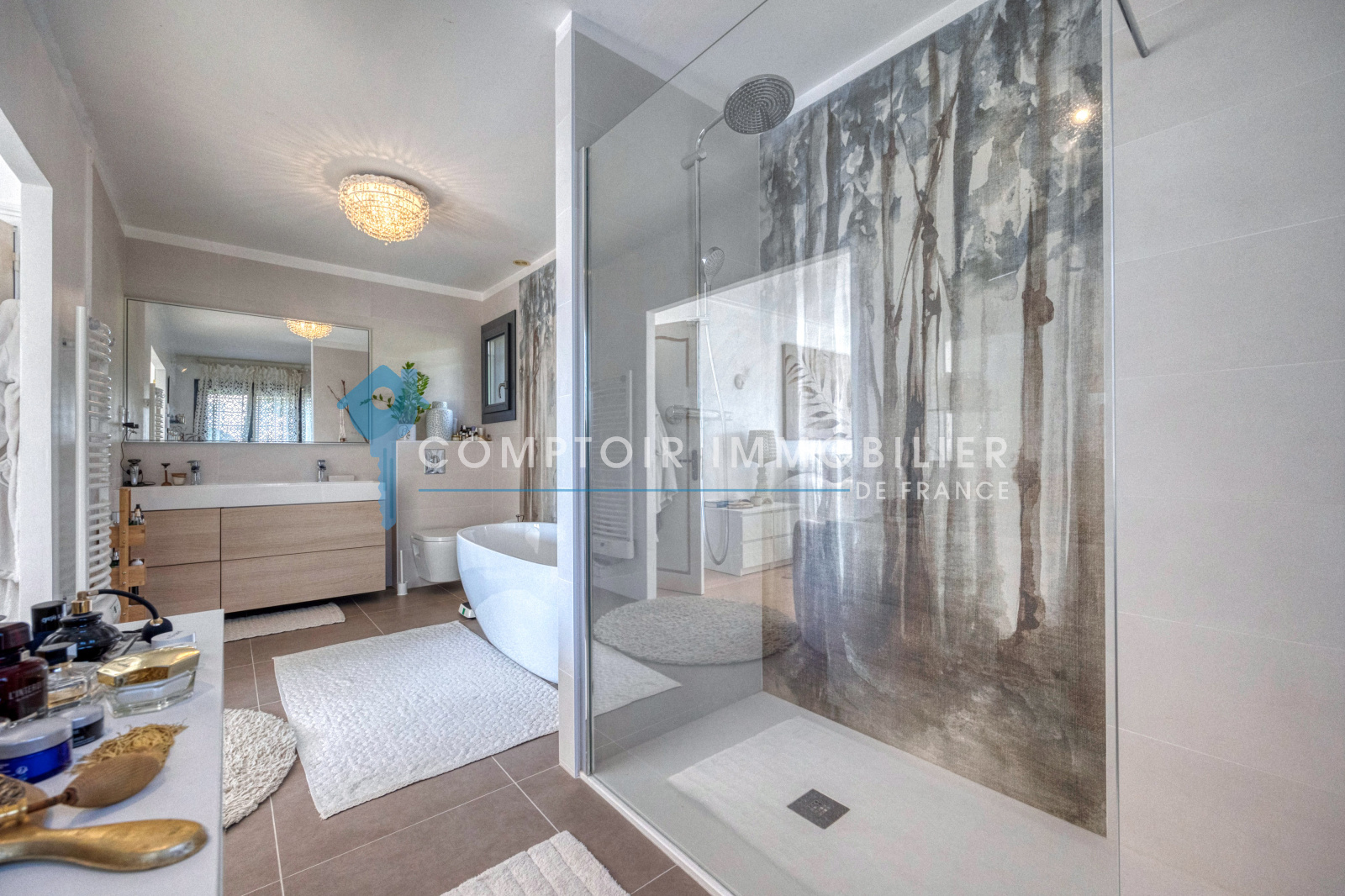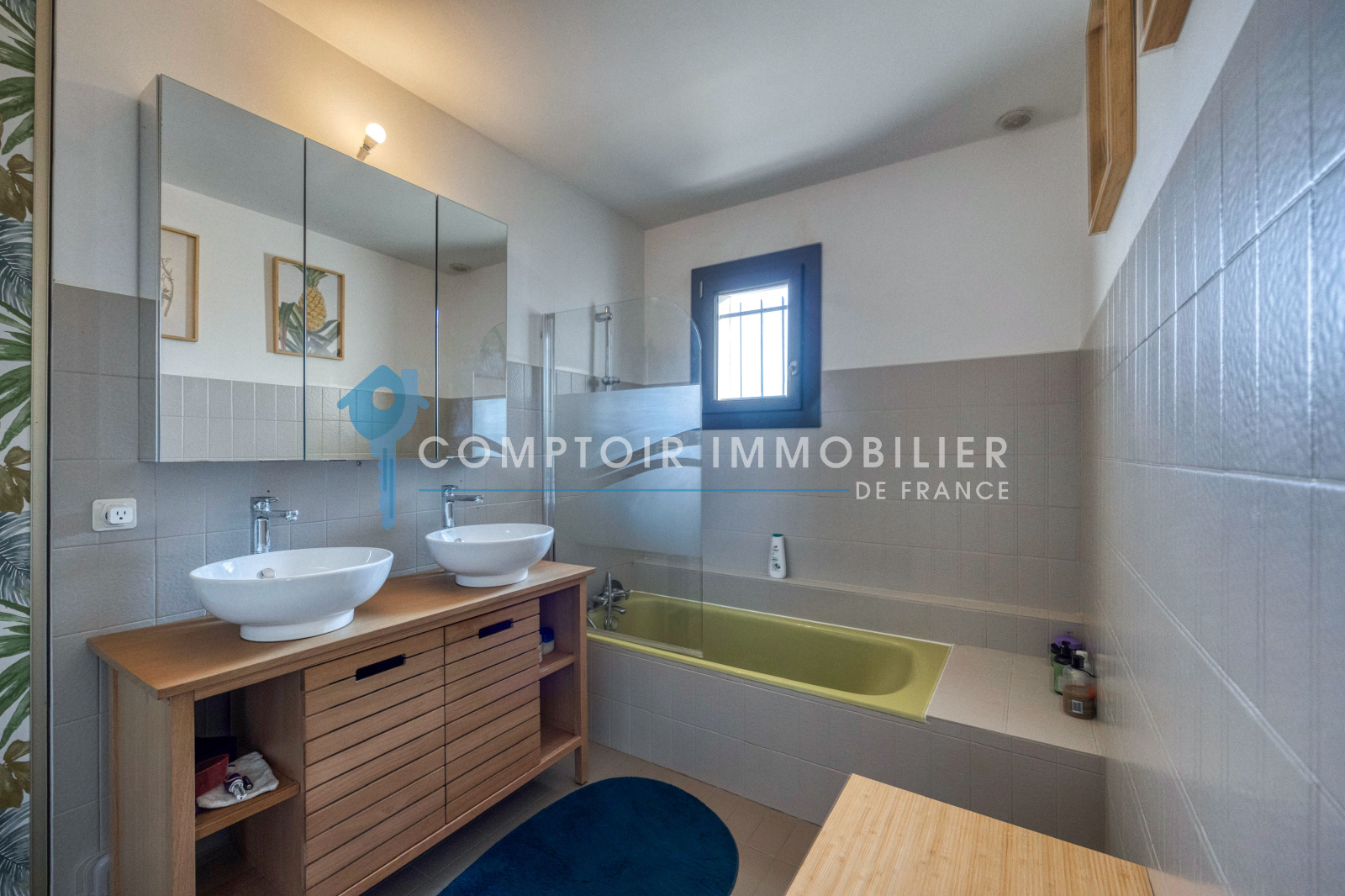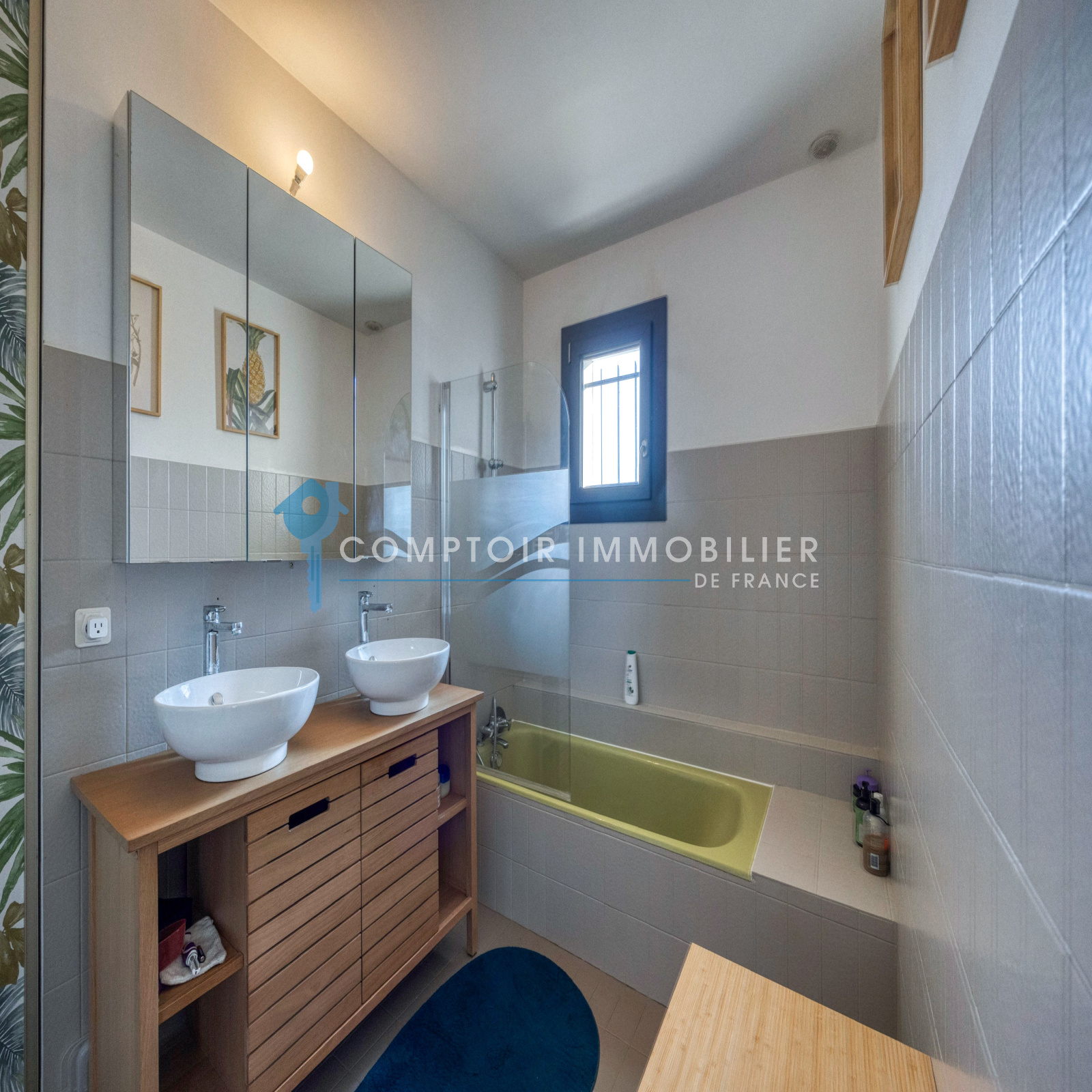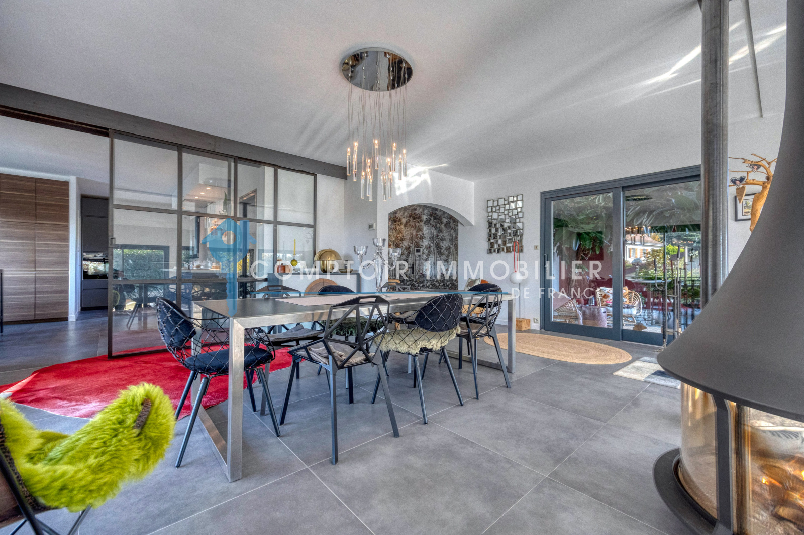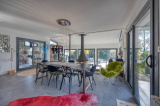 Niveau rez de jardin : Grande et belle entrée s'ouvrant sur un grand salon/séjour en demi niveau. Cuisine semi-ouverte avec accès à un cellier séparé - Suite parentale de plus de 30m2, chambre d'ami de 14m2 avec salle d'eau séparée.