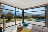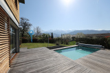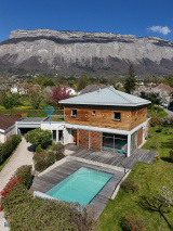 A l'extérieur, un vaste terrain clôt et arboré de 1017m² avec piscine. Vue exceptionnelle sur la chaîne de Belledonne. La maison dispose également d'une cave, d'un local technique ainsi que d'un garage fermé en annexe.