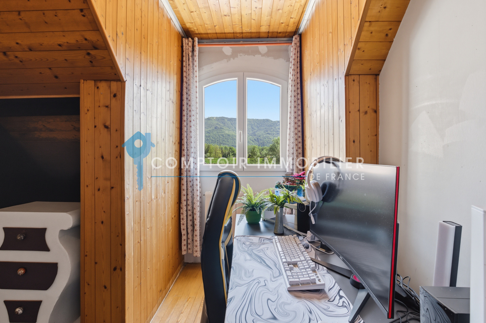 Au 2ème étage : grande pièce agréable de 45 m² au sol, un bureau de 8 m², 1 pièce de 18 m², 2 chambres de 18 et 22 m², une salle d’eau et un WC séparé.