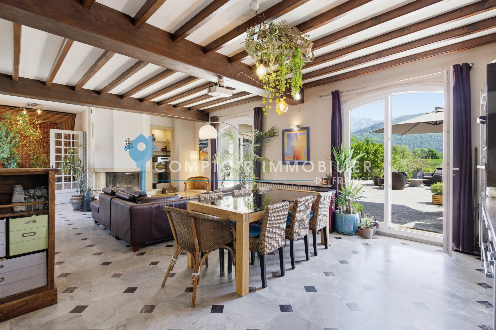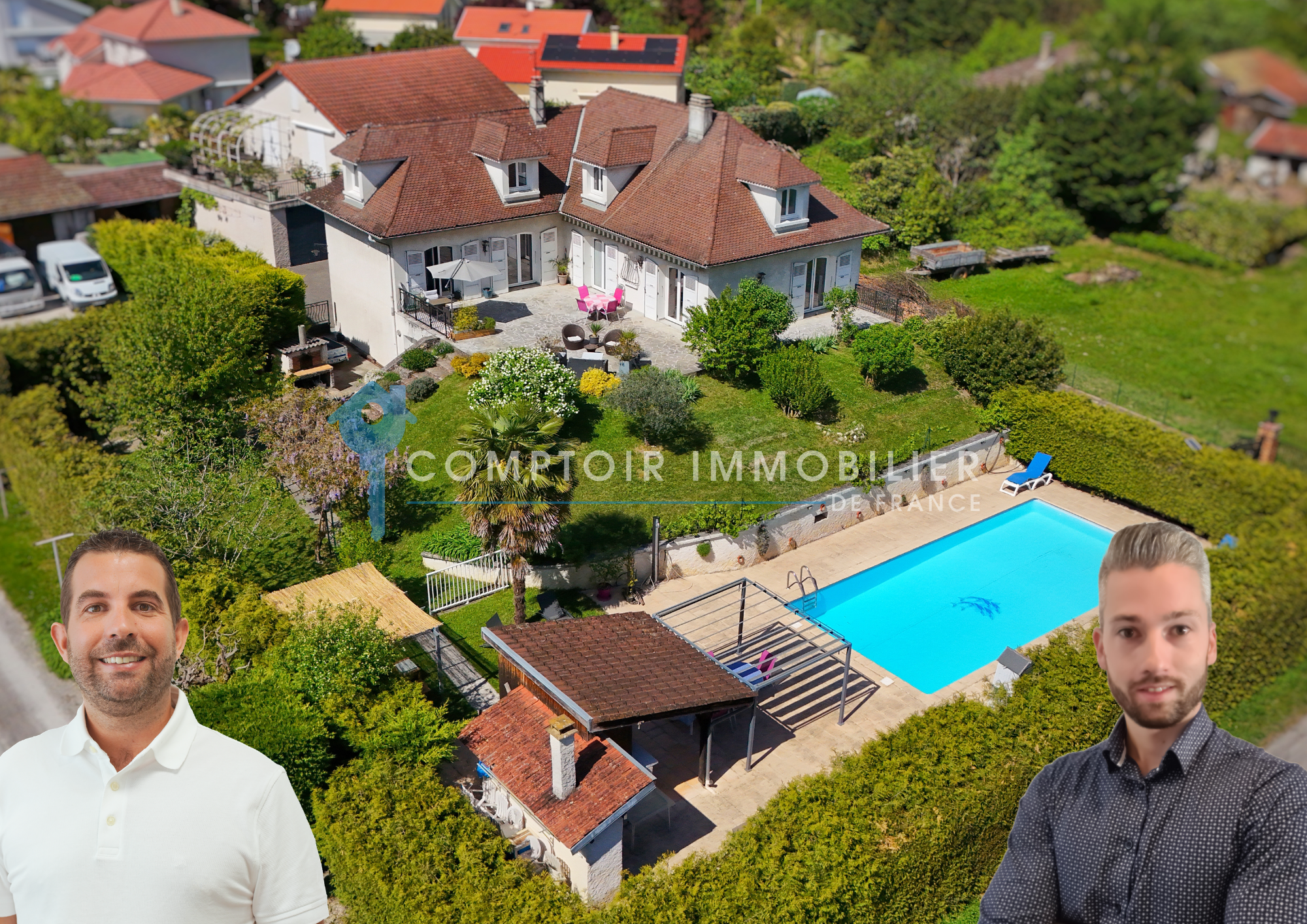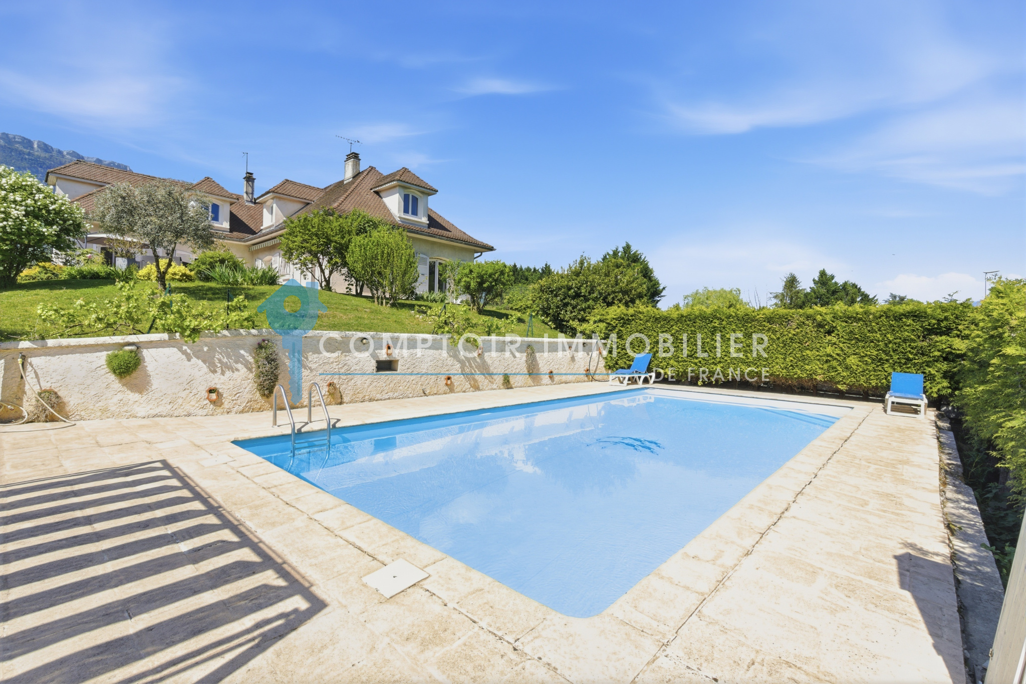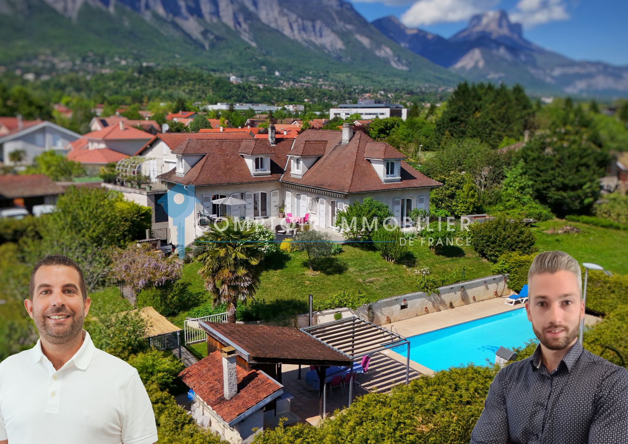 Propriété située dans le bas de la commune de Meylan, limite Montbonnot, au cœur du Grésivaudan, maison construite en 1974 sur un terrain de 1 275 m² comprenant une grande piscine 12 x 5 et un pool house comprenant une cuisine d’été + WC.