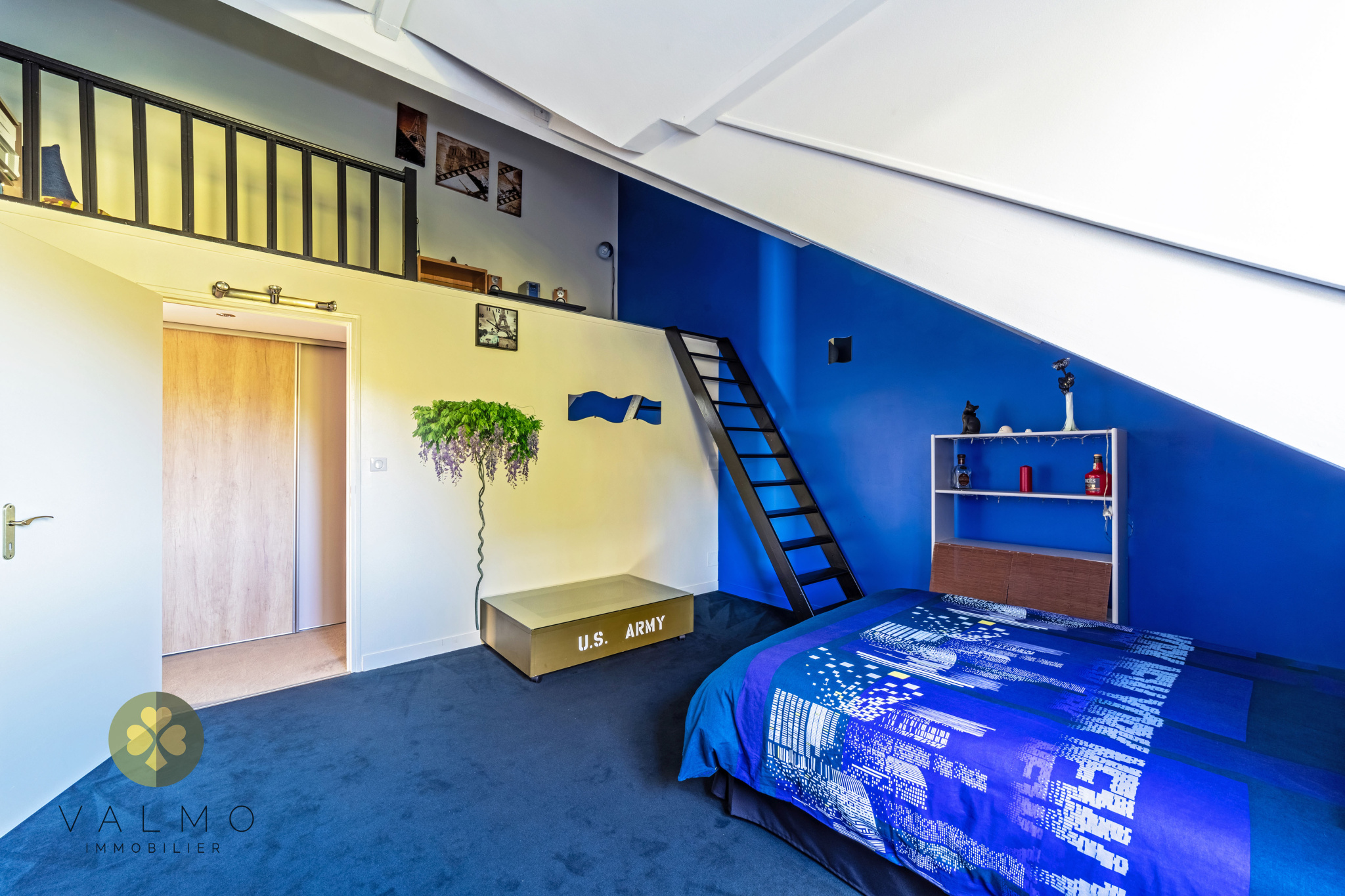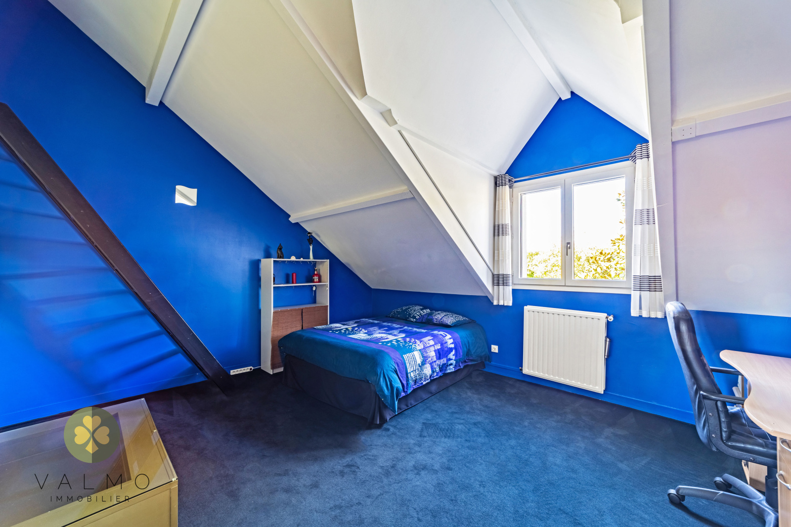 À l'étage, un palier dessert une mezzanine, trois chambres, une salle d’eau, une salle de bains et deux WC indépendants.